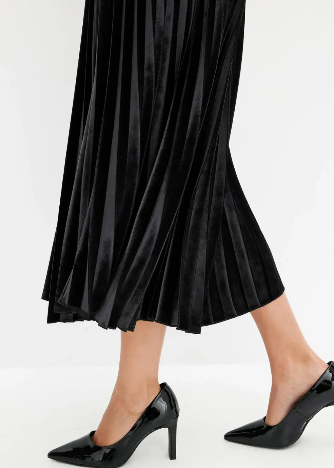 langer Plissée-Rock in Samtoptik