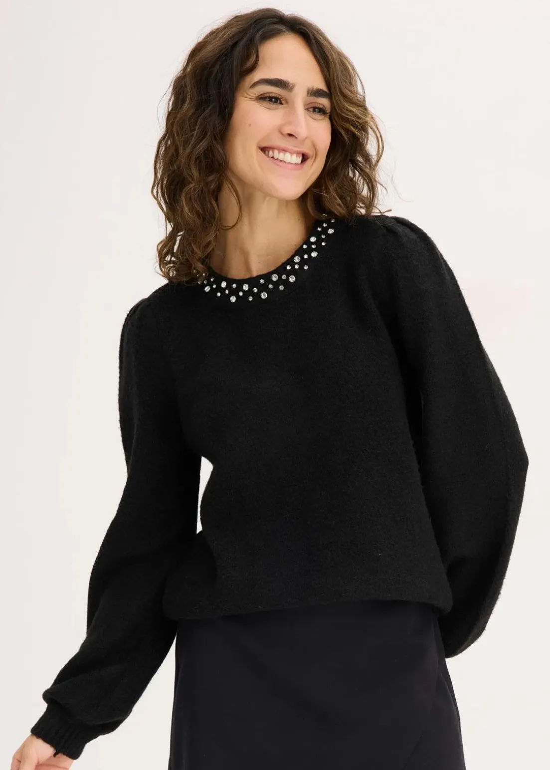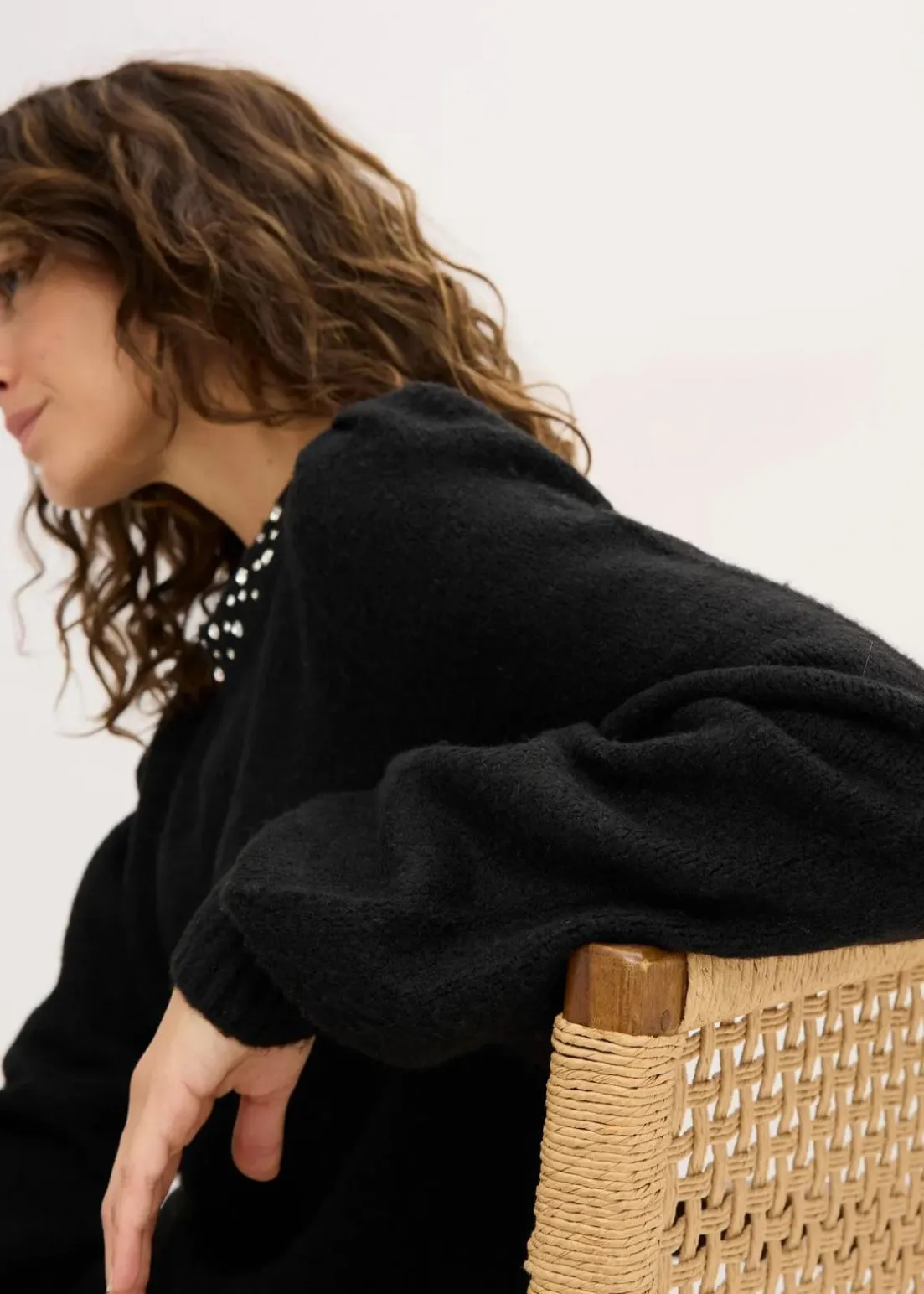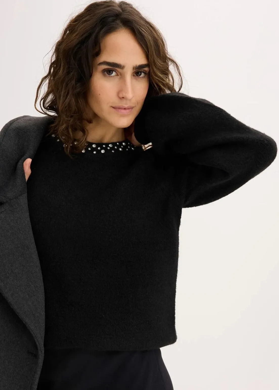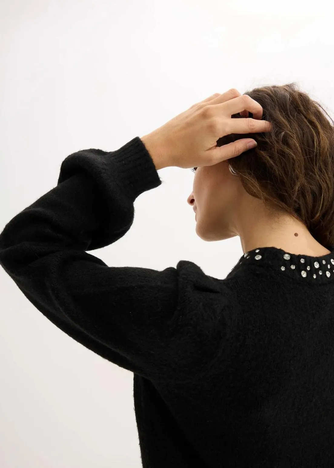 Pullover mit Flauschgarn und Strassverzierung