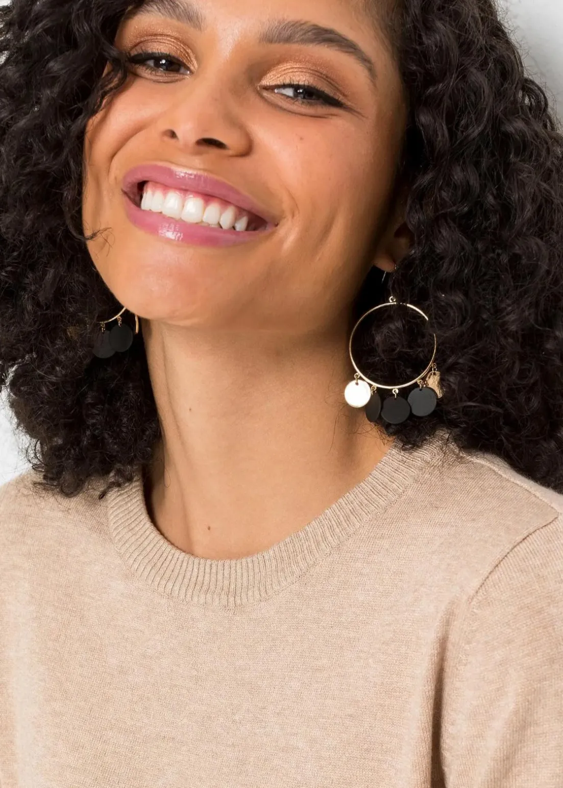 Pullover mit Ballon-Ärmeln und Rundhals-Ausschnitt. Länge in Gr. 36/38 ca. 60 cm.