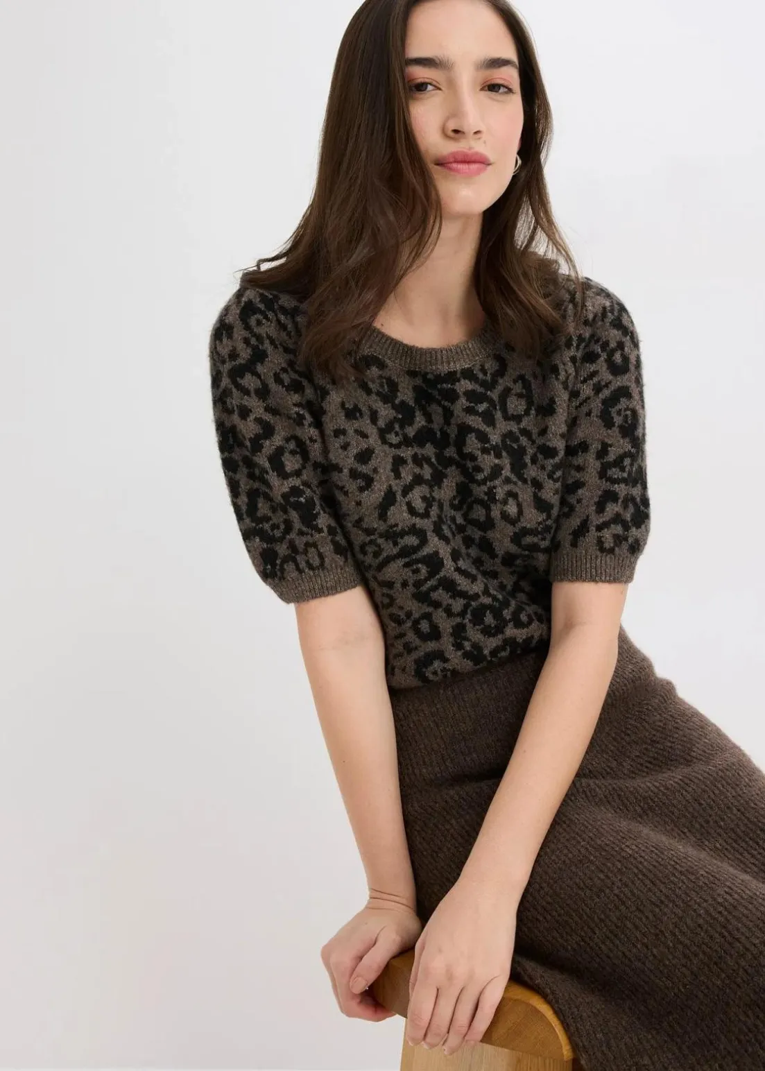weicher Pullover mit halblangen Puffärmeln und modischem Leoparden-Muster