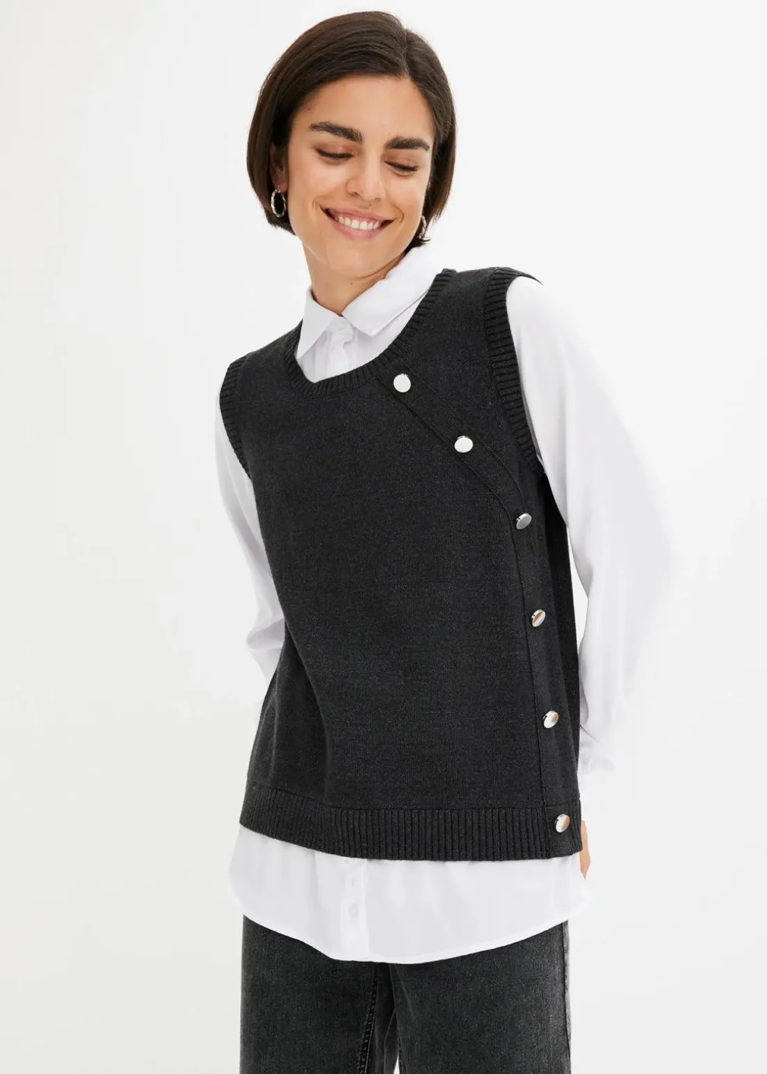 femininer Pullover mit Blusen-Einsatz