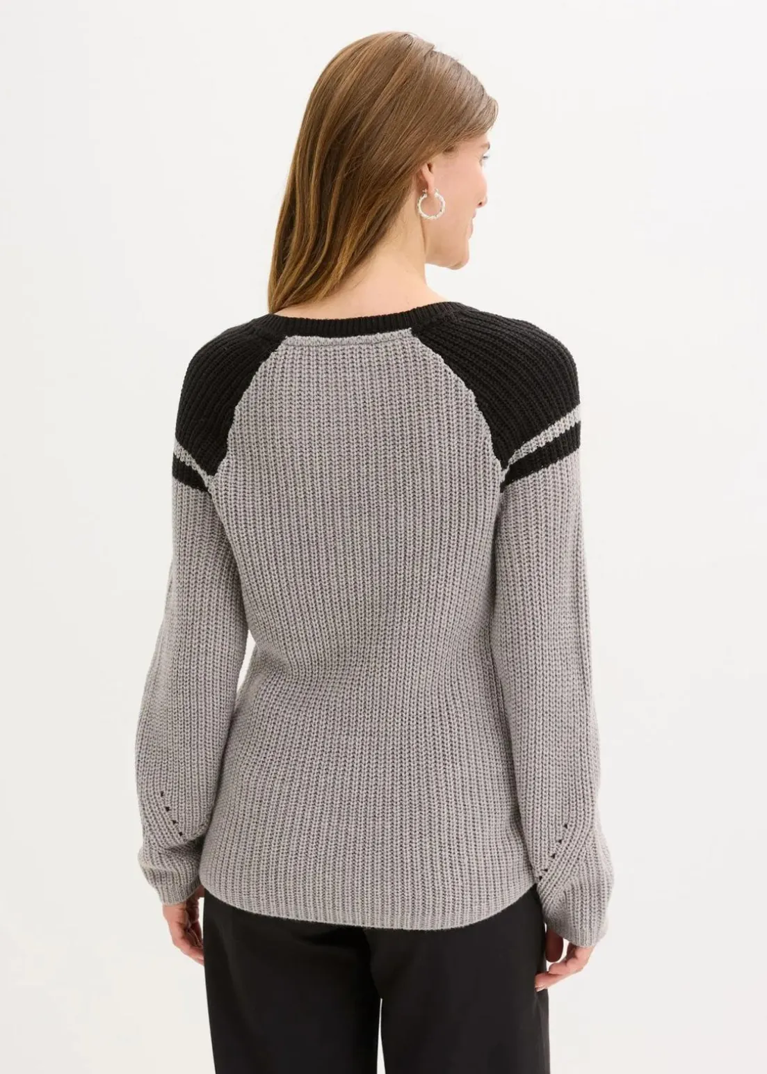 Schöner Pullover von BODYFLIRT. Er hat einen Rundhalsausschnitt und Knöpfe an den Schultern. Länge in Größe 36/38 ca. cm.