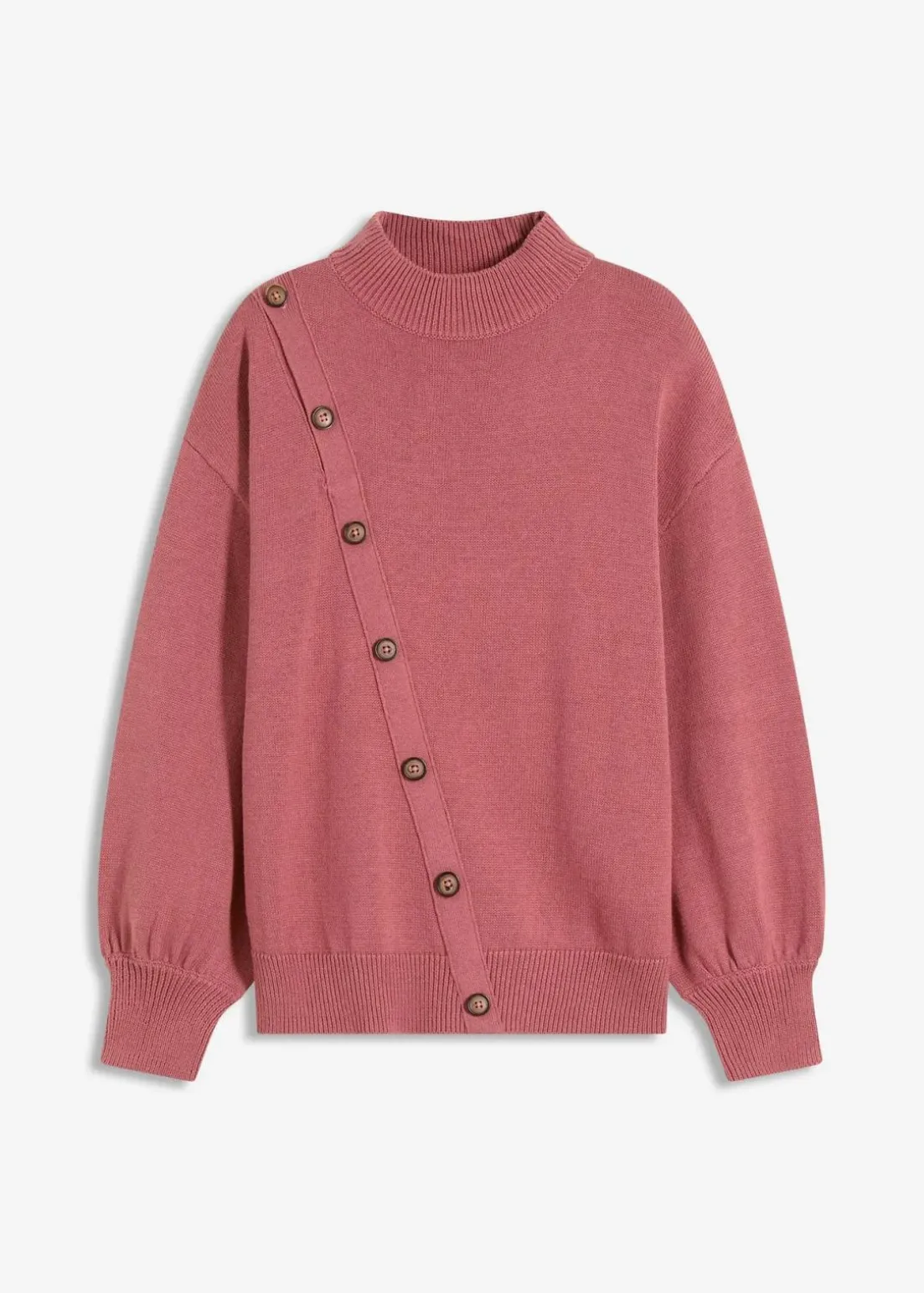 Pullover im leichten Oversize-Schnitt mit diagonaler Knopfleiste die sich an der Schulter öffnen lässt