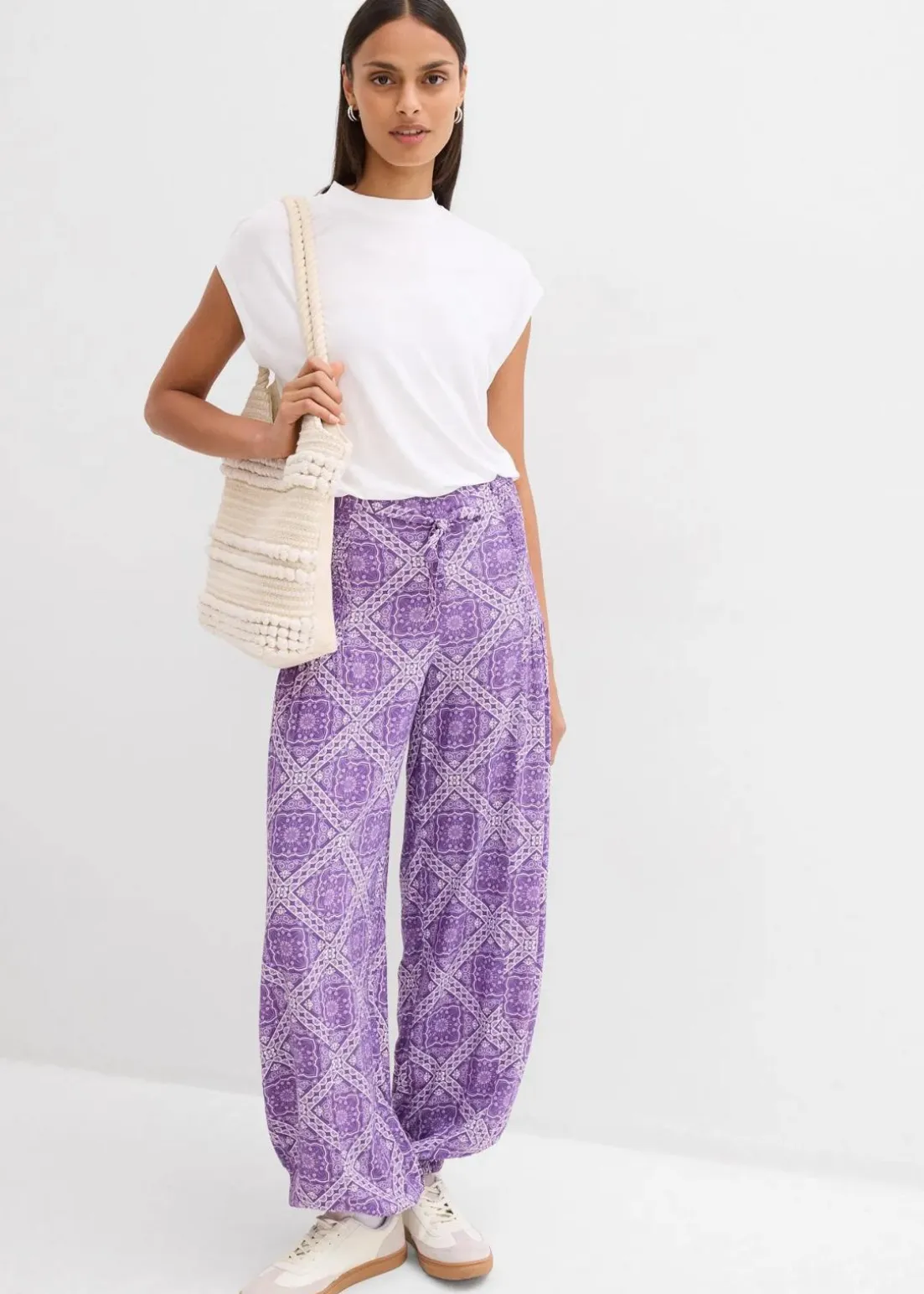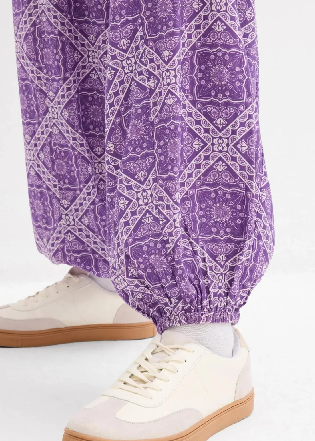 Ein echter Eyecatcher für alle, die es leger lieben – das ist diese stylishe Pumphose aus leichtem Material.Die locker geschnittene Hose ist allover gemustert und in der Taille sowie an den Beinenden mit elastischen Bündchen versehen. Die Raffungen in der Hüfte sorgen für einen lässigen Sitz. Am besten passt die angesagte Pumphose zu figurbetonten Tops und Shirts.