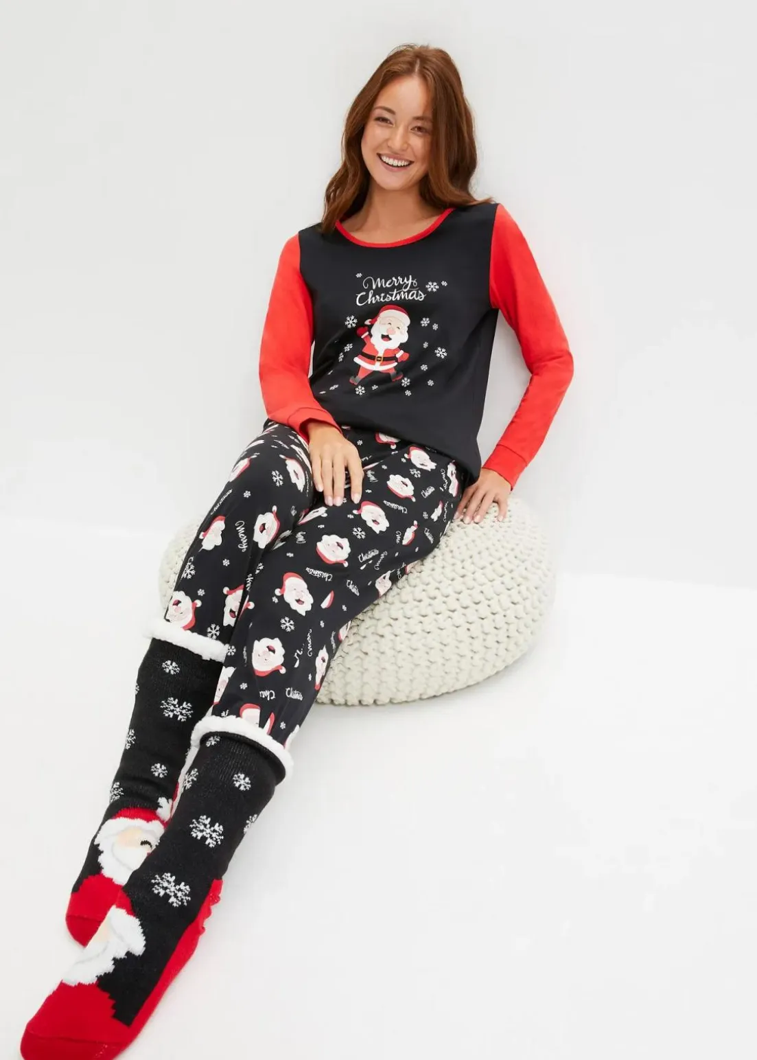 Gemütlicher Schlafanzug mit Weihnachtsmann Druck aus Baumwolle