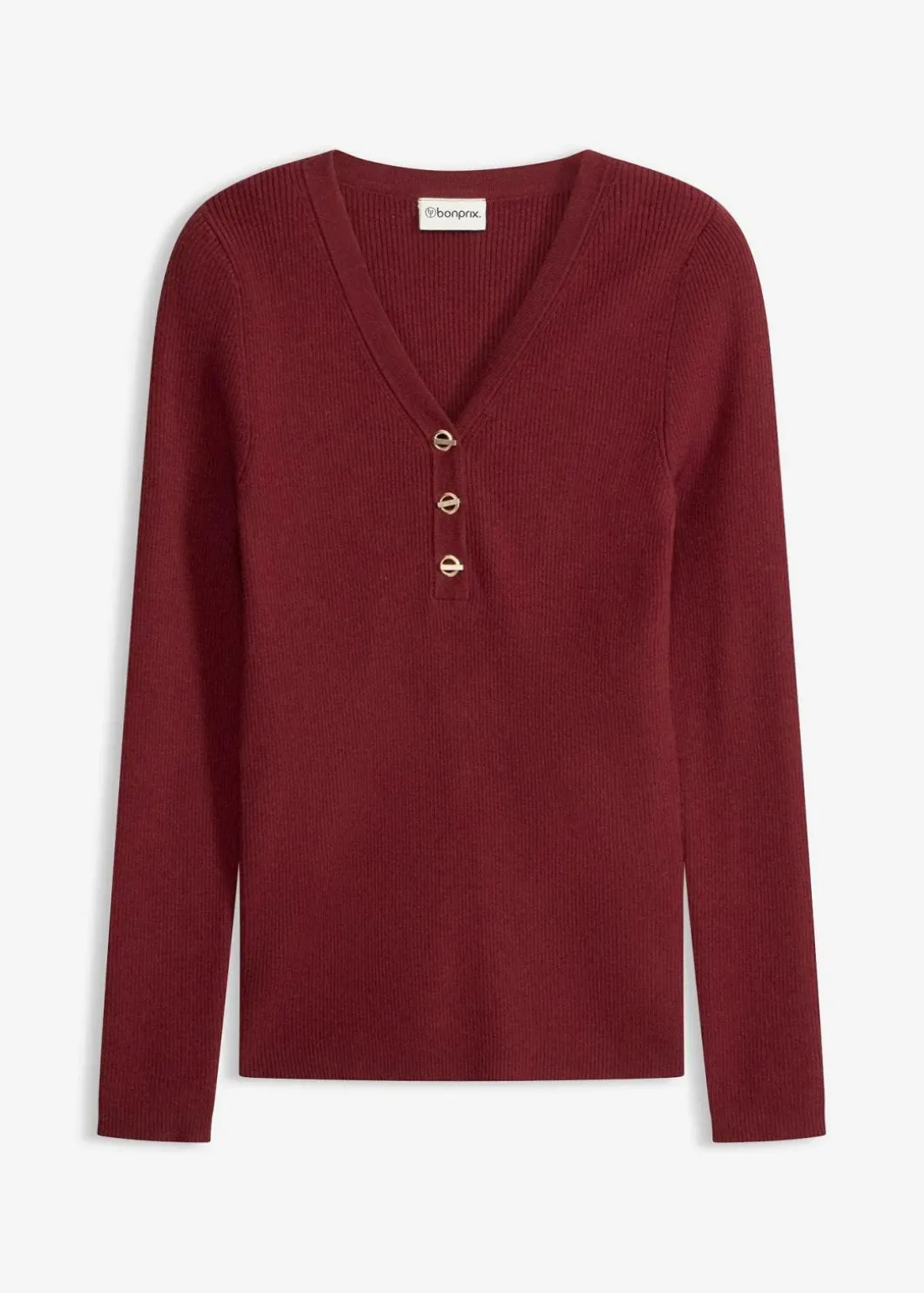 eleganter Rippenpullover mit verspielten Knöpfen