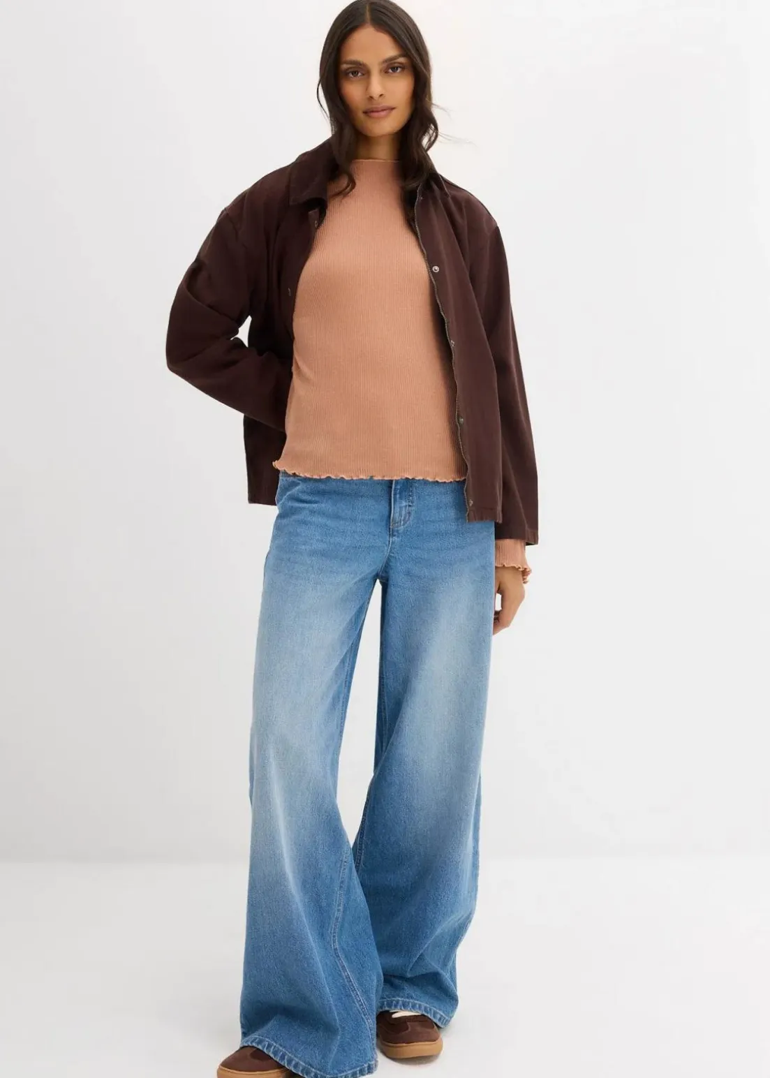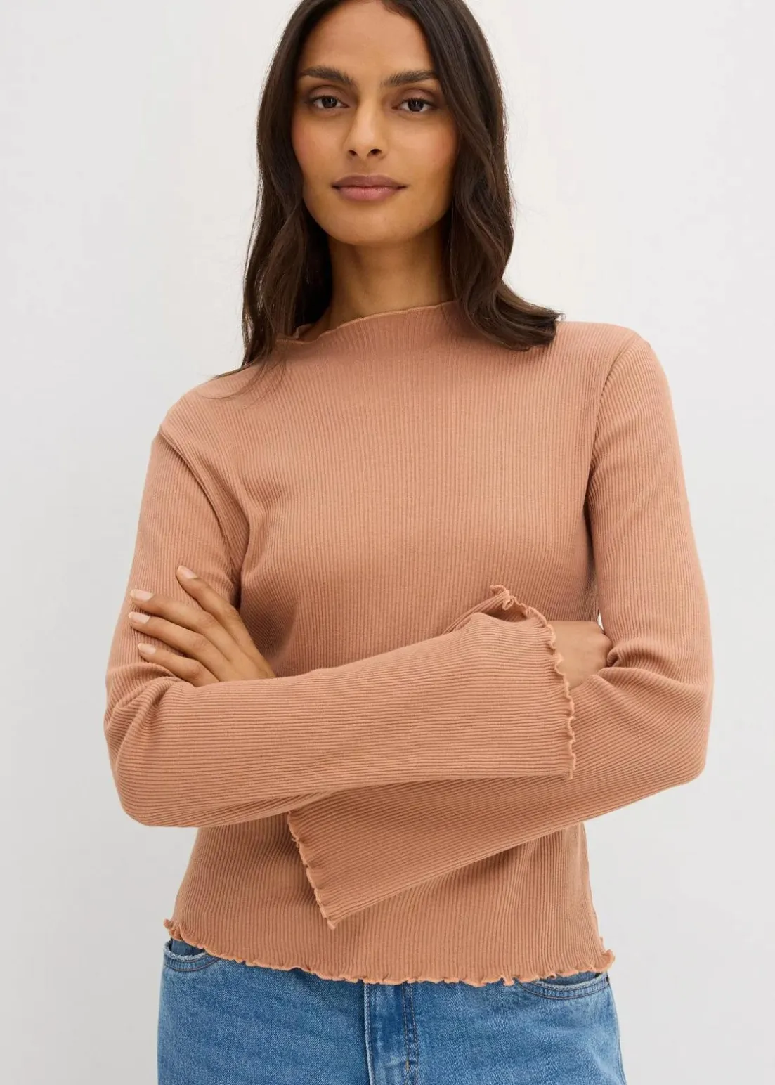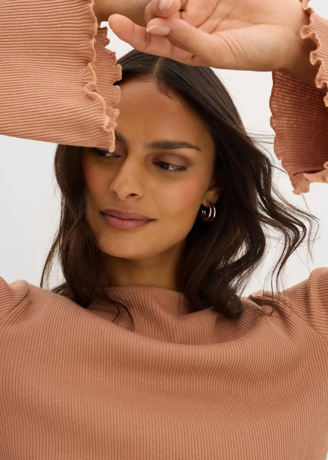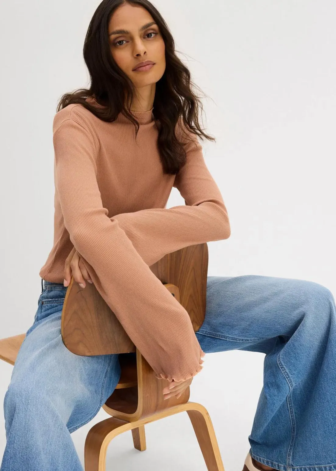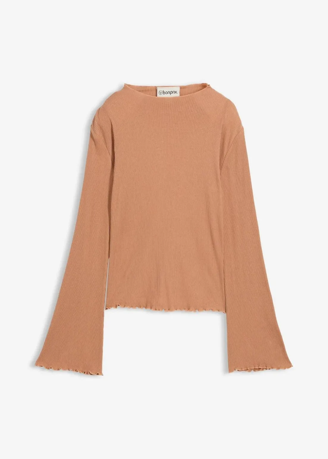 Feines Rippshirt aus reiner Baumwolle mit Trompetenärmeln