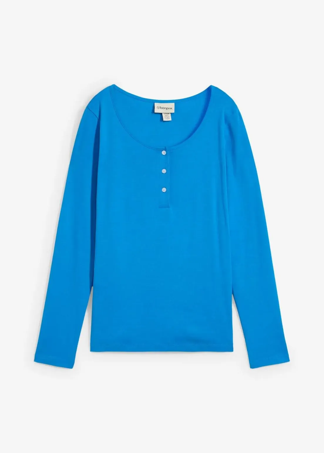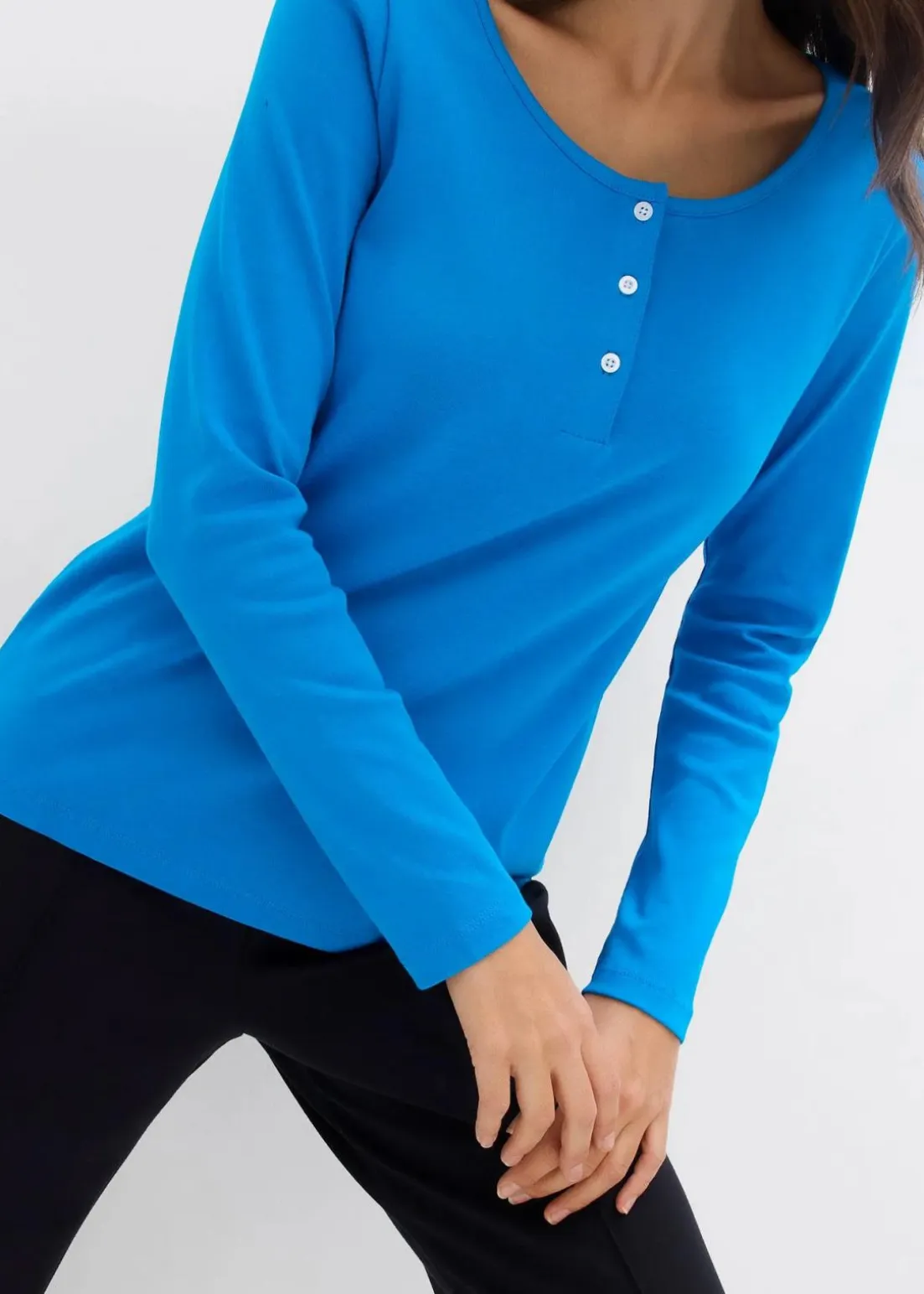 Bequemes Langarmshirt aus Bio-Baumwolle mit einer Knopfleiste. Länge in Gr. 40/42 ca. 66cm, maschinenwaschbar.
