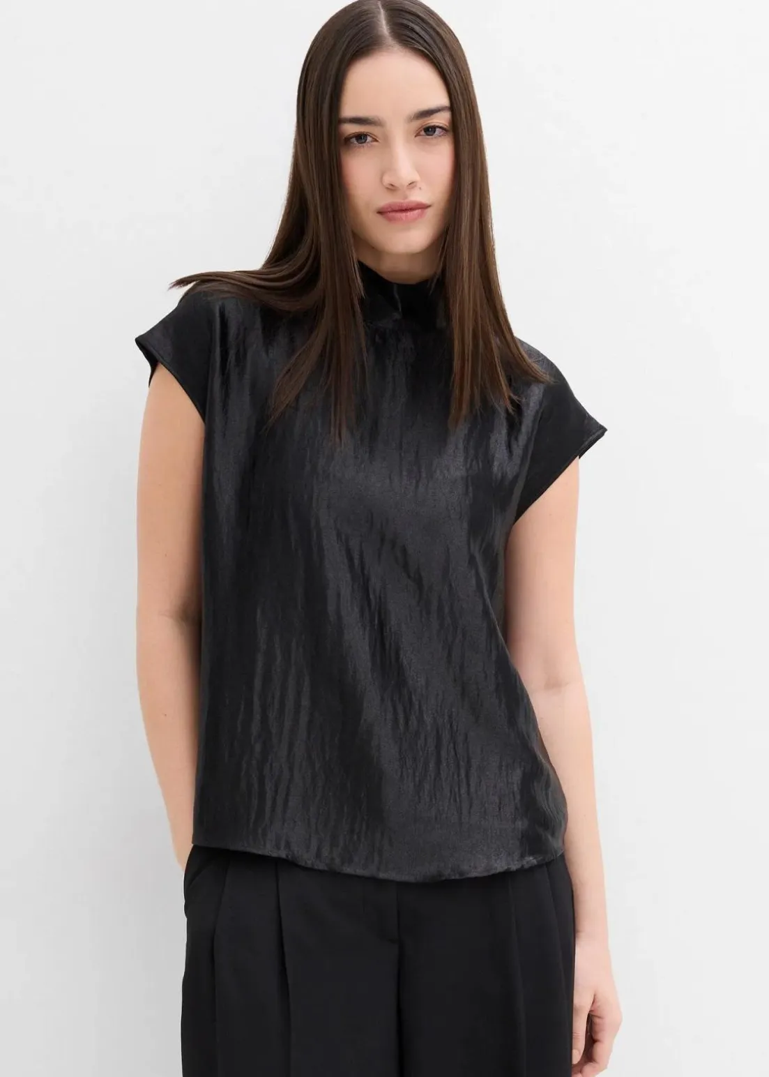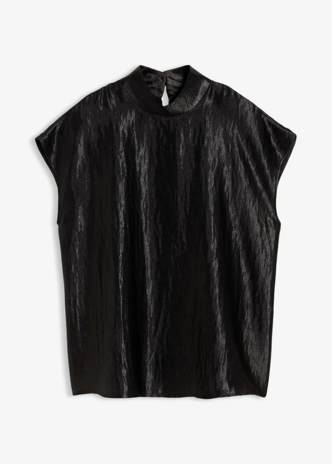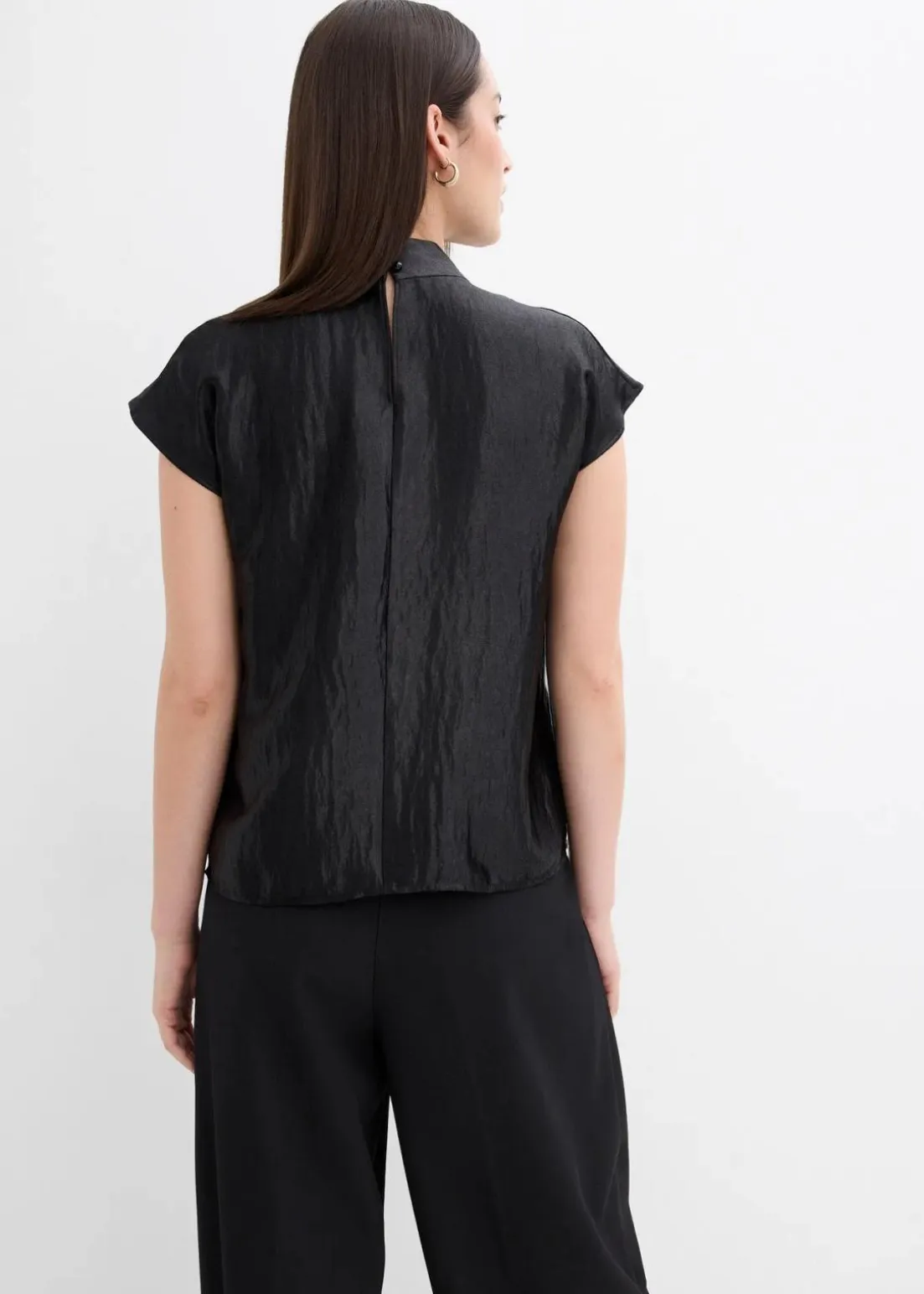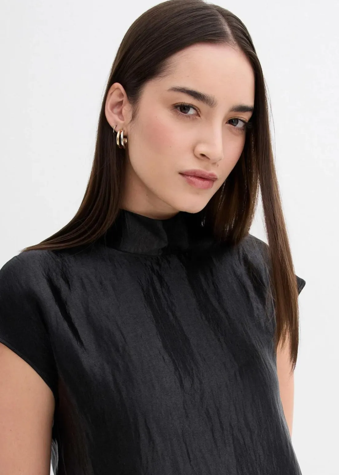 Ärmellose Bluse aus fließendem Stoff mit Knopfverschluss hinten