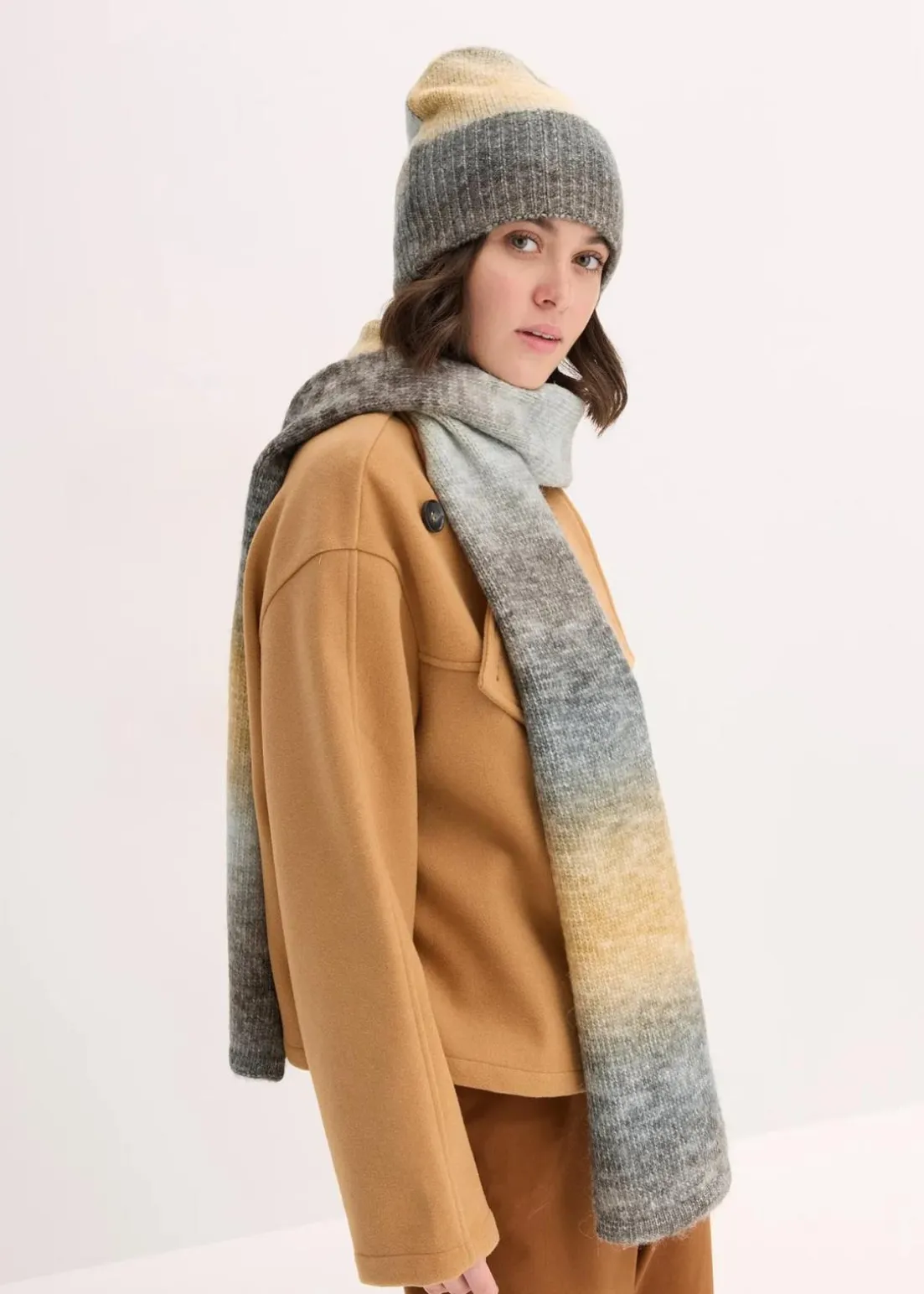 Herbstliches Set aus Schal und Mütze mit Farbverlauf