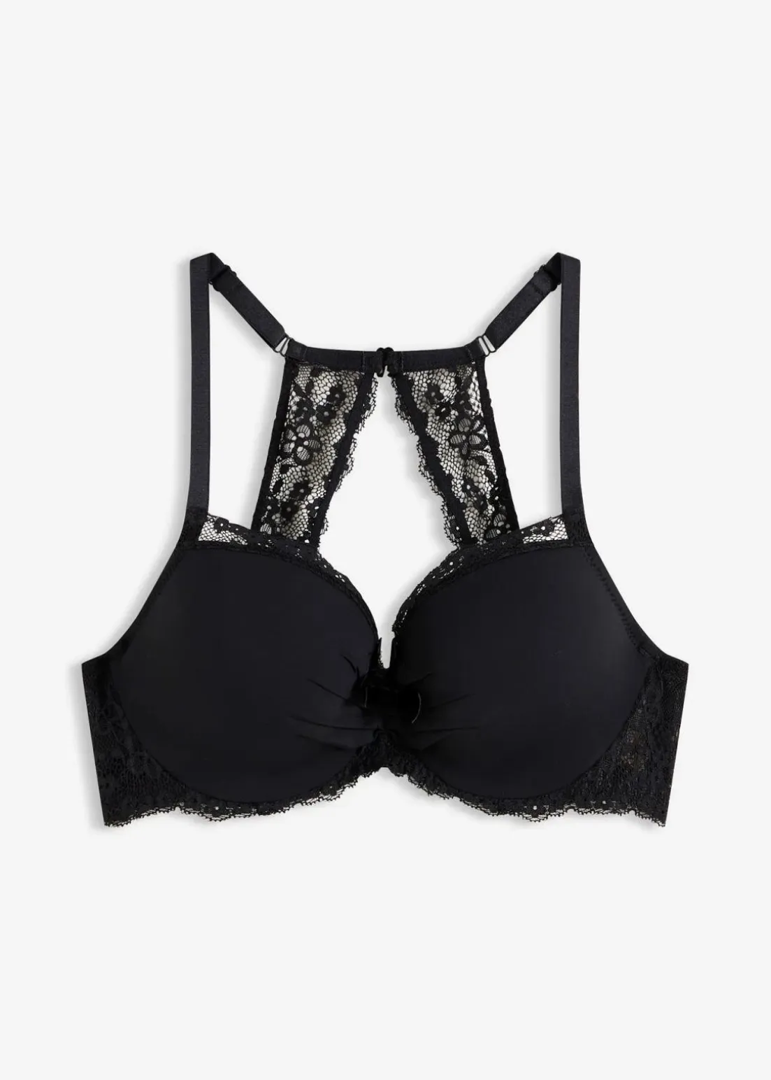 Schalen-BH mit Racerback aus Spitze und Schleifendetail.