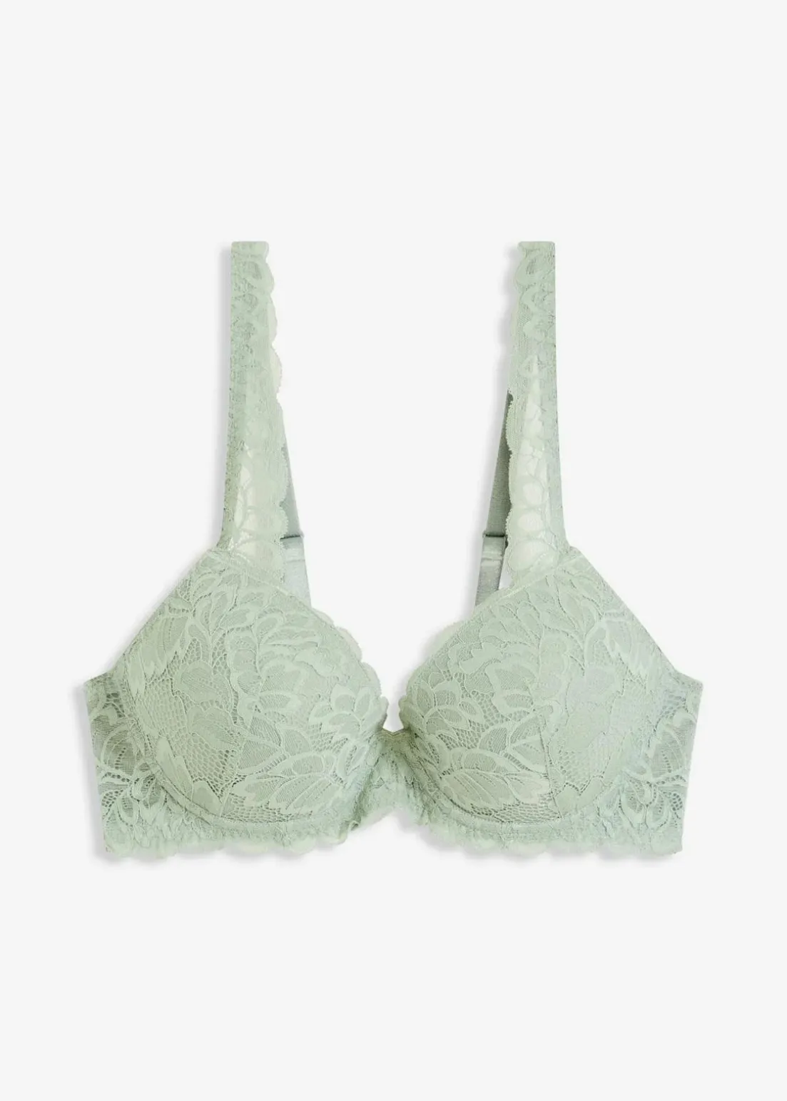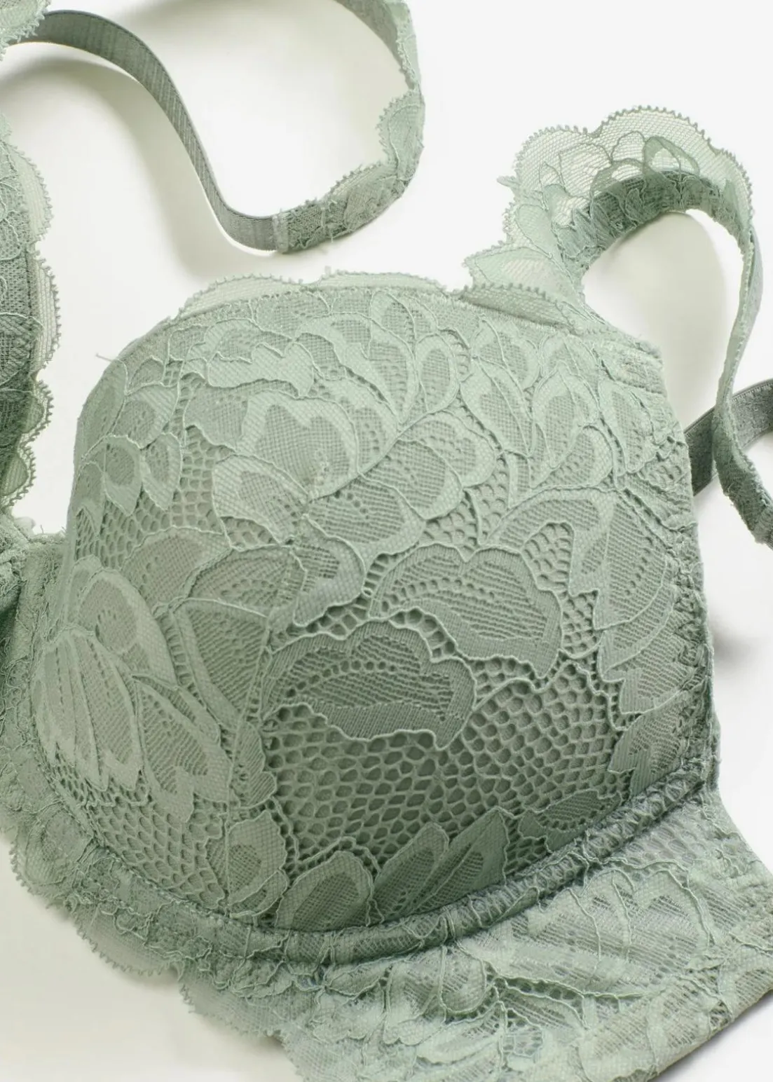 Schalen-BH mit floraler Spitze und süßem Detail am Träger.