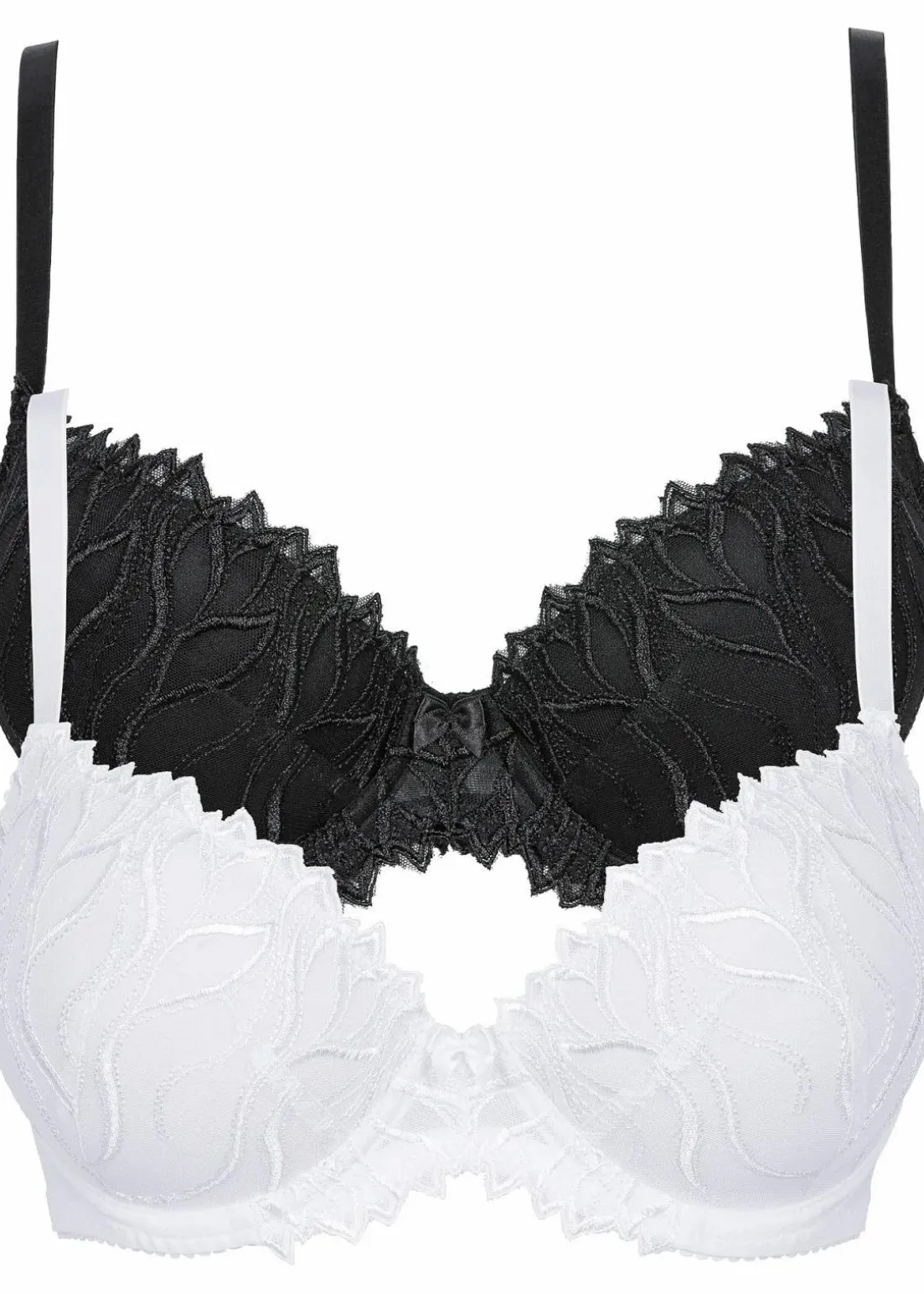 Dieser Doppelpack BHs von BODYFLIRT zeichnet sich durch ein romantisches Design aus. Die Cups und der Steg sind mit feiner Spitze mit gezackten Rändern verziert. Eine kleine Schleifenapplikation setzt einen schönen Akzent an der Brücke.Die unifarbenen BHs überzeugen mit vorgeformten Bügel-Cups. Eine integrierte Polsterung hebt den Busen an und zaubert ein optisch vergrößertes Dekolleté. In großen Größen sind Verschluss sowie Träger breiter gestaltet.