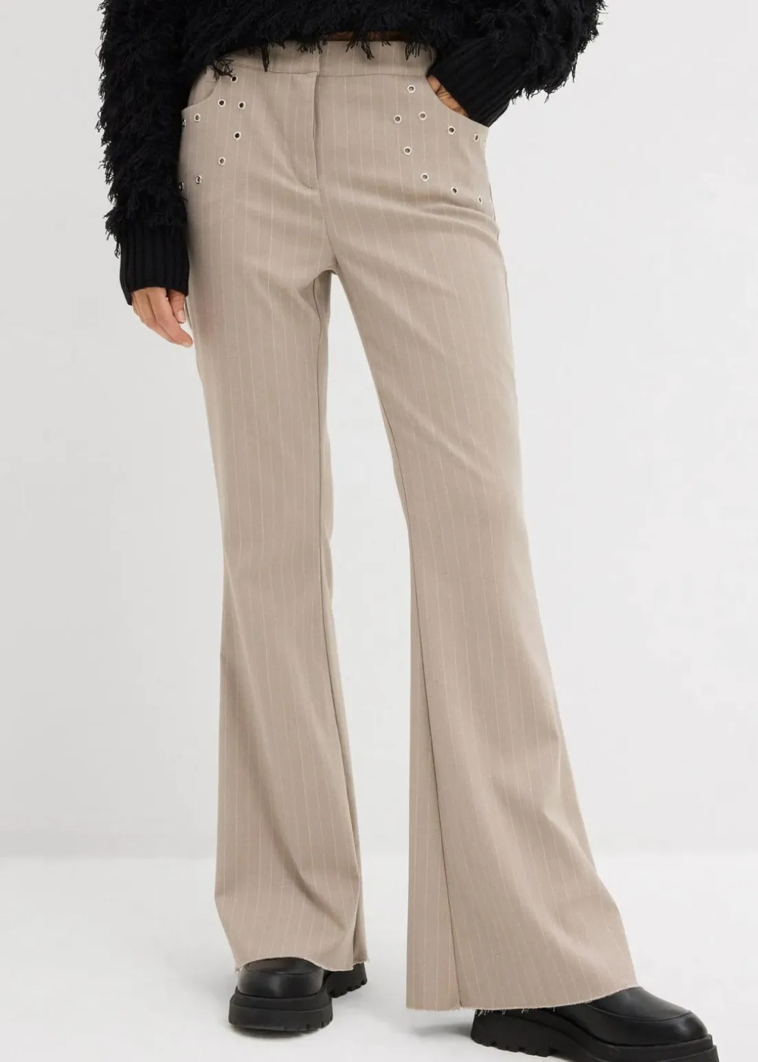Modische Schlaghose aus fließendem Viskose-Mix mit Nieten und offenem Saum