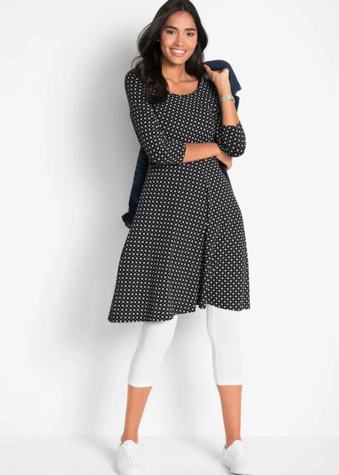 Die Stretch-Caprileggings von bpc lassen sich mit vielen schicken Lieblingsteilen wie Longshirts, Shirt-Kleidern oder Strickjacken kombinieren. Sie können die bequemen Leggings in komfortabler Leibeshöhe im Haus, aber auch draußen tragen. Im praktischen Doppelpack erhältlich, sind sie die passende Kleidung für viele Gelegenheiten.Keilpumps passen zu den Stretch-Leggings genauso gut wie Ballerinas. Auch sommerliche Sandalen harmonieren mit den Caprileggings optimal. Die Leggings aus weichem Baumwoll-Stretch zeichnen sich durch hohe Formbeständigkeit aus.