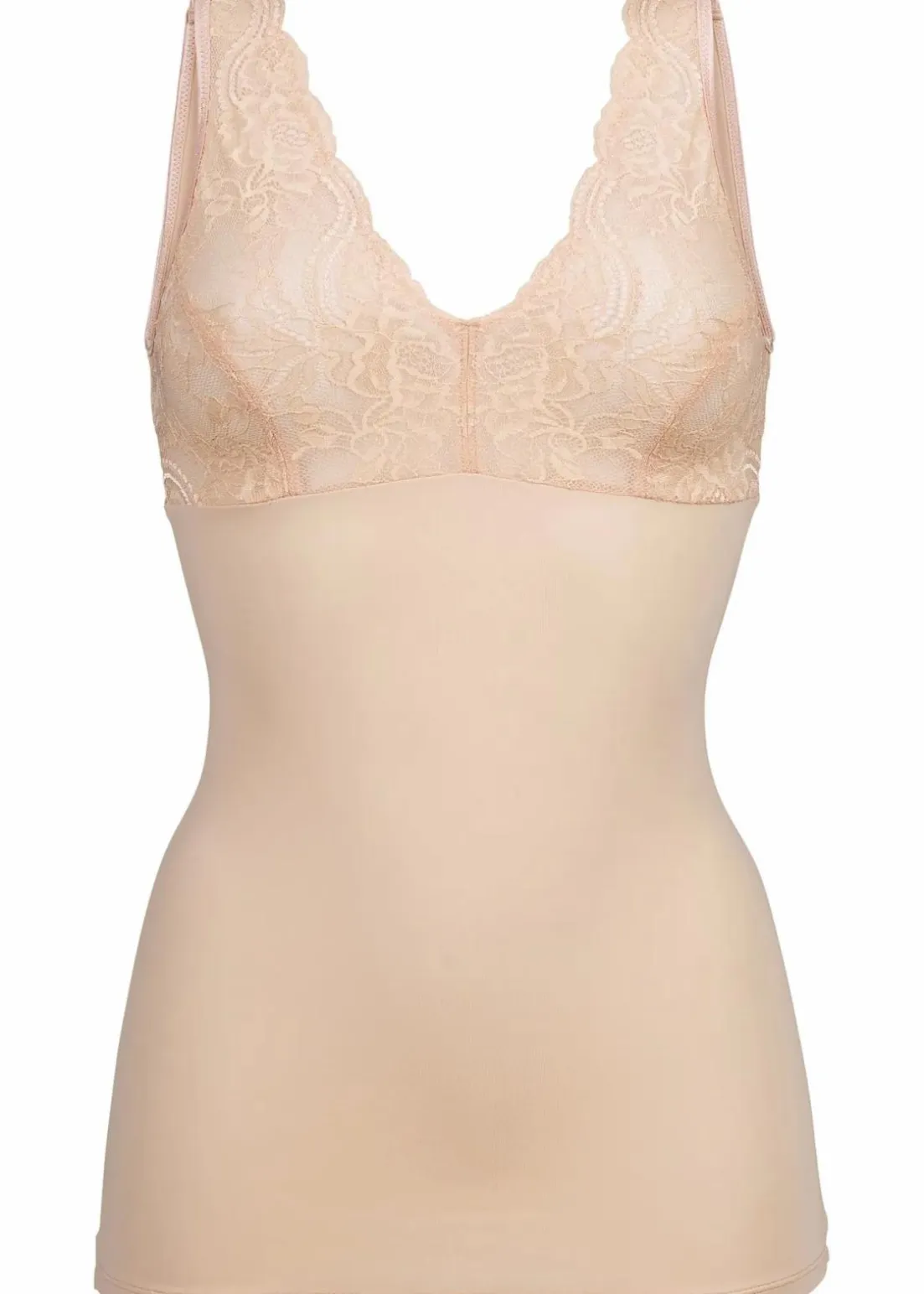 Dieses tolle Top von Nice Size zaubert eine attraktive Silhouette. Das blickdichte Top mit mittlerem Formeffekt eignet sich für die Cupgrößen A bis D und formt ansprechend den Bauch. Die Cups und die Träger sind mit verführerischer Spitze besetzt.Das Formtop lässt sich solo oder in Kombination mit einem BH tragen.
