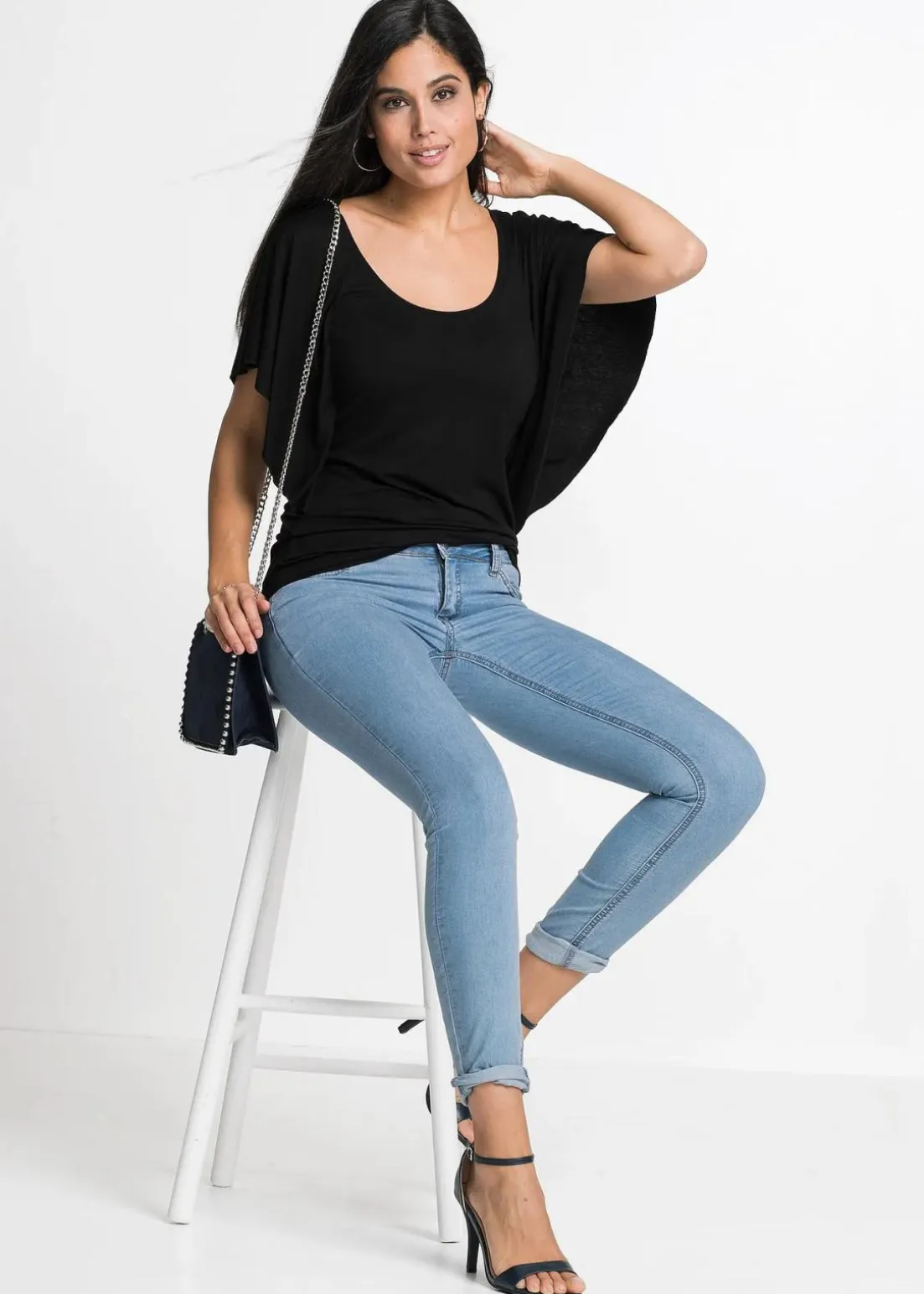 Elegantes Shirt mit Fledermausärmeln und Rundhalsausschnitt