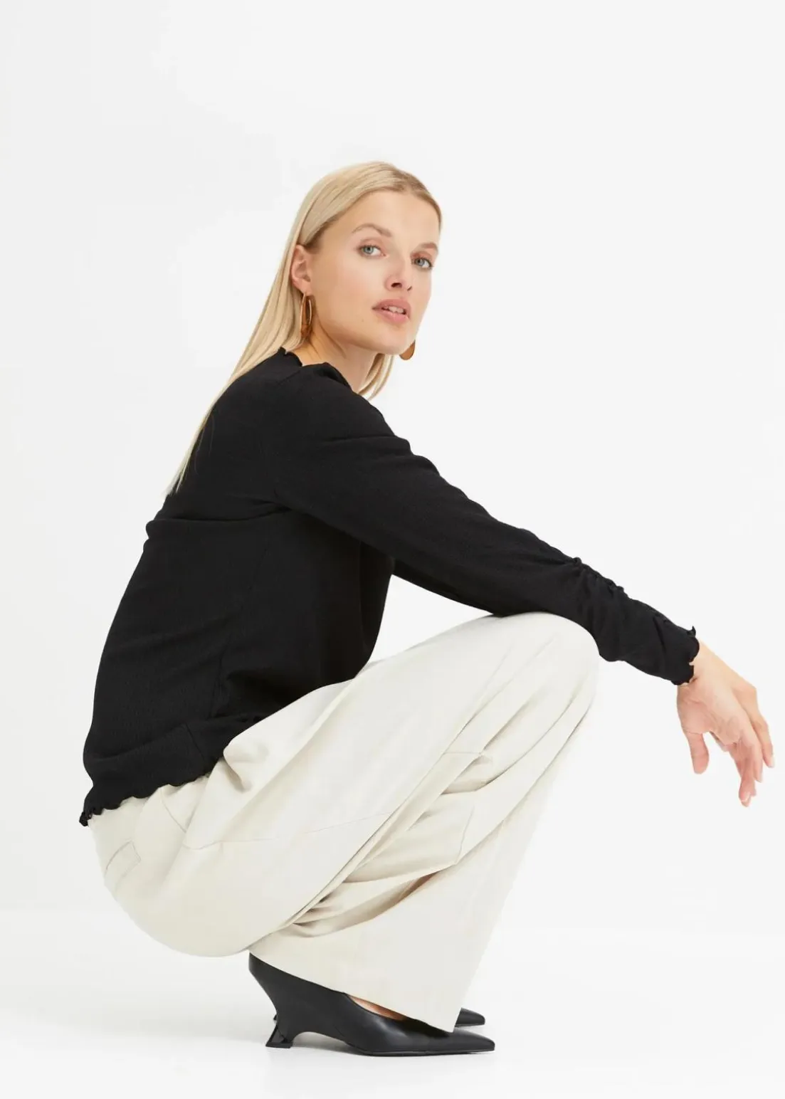 Bequem geschnittenes Langarmshirt aus Strukturjersey