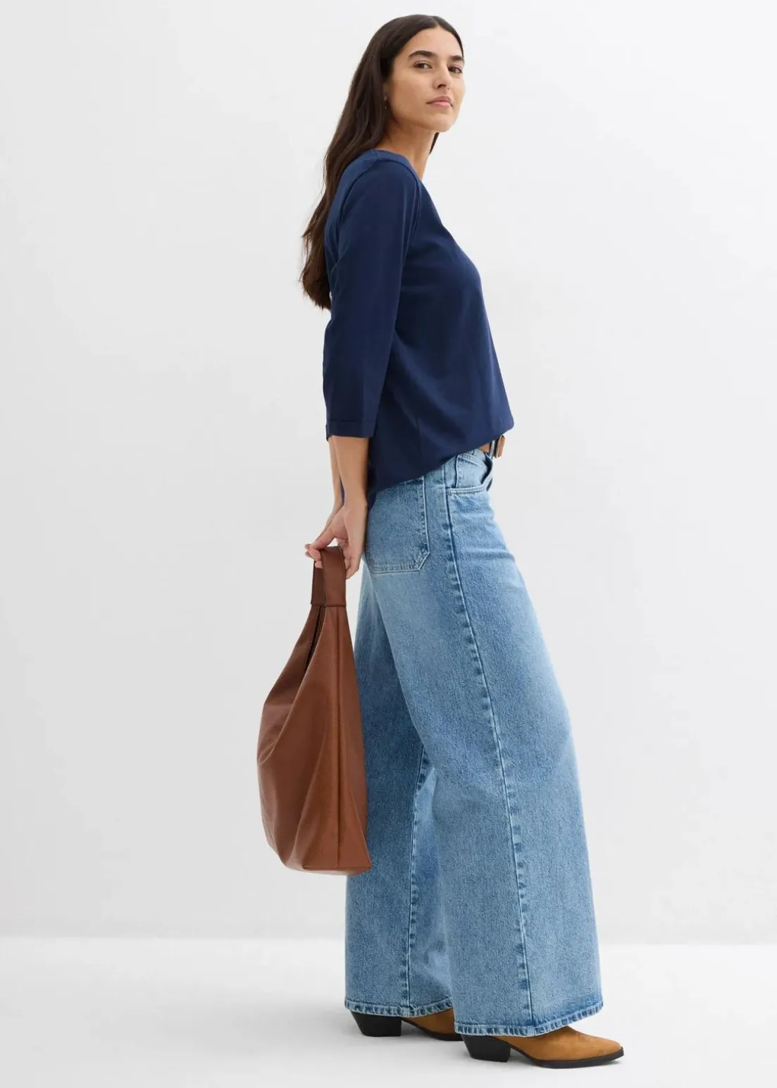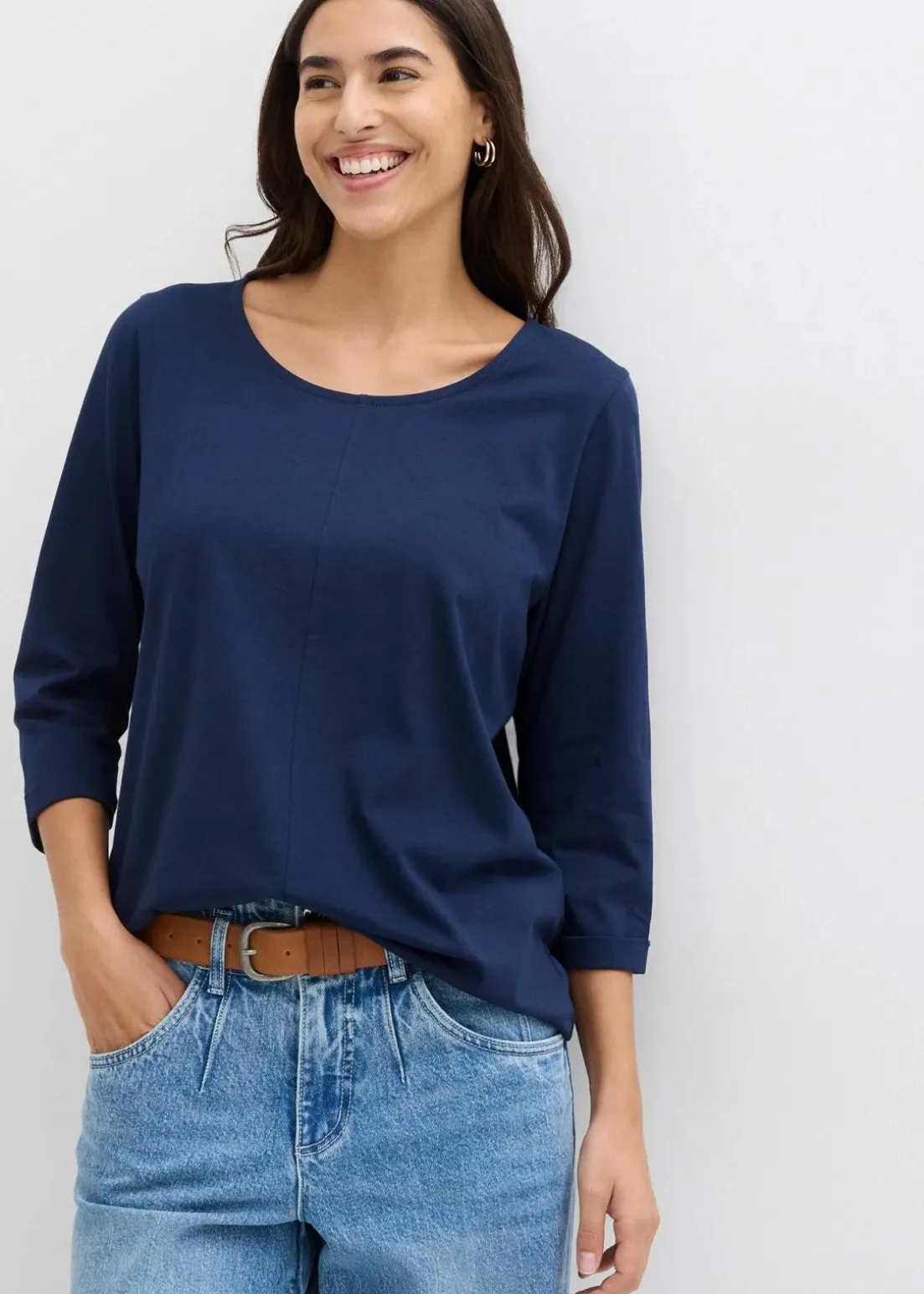 Weit geschnittenes Shirt mit 3/4 Arm aus reiner Baumwolle