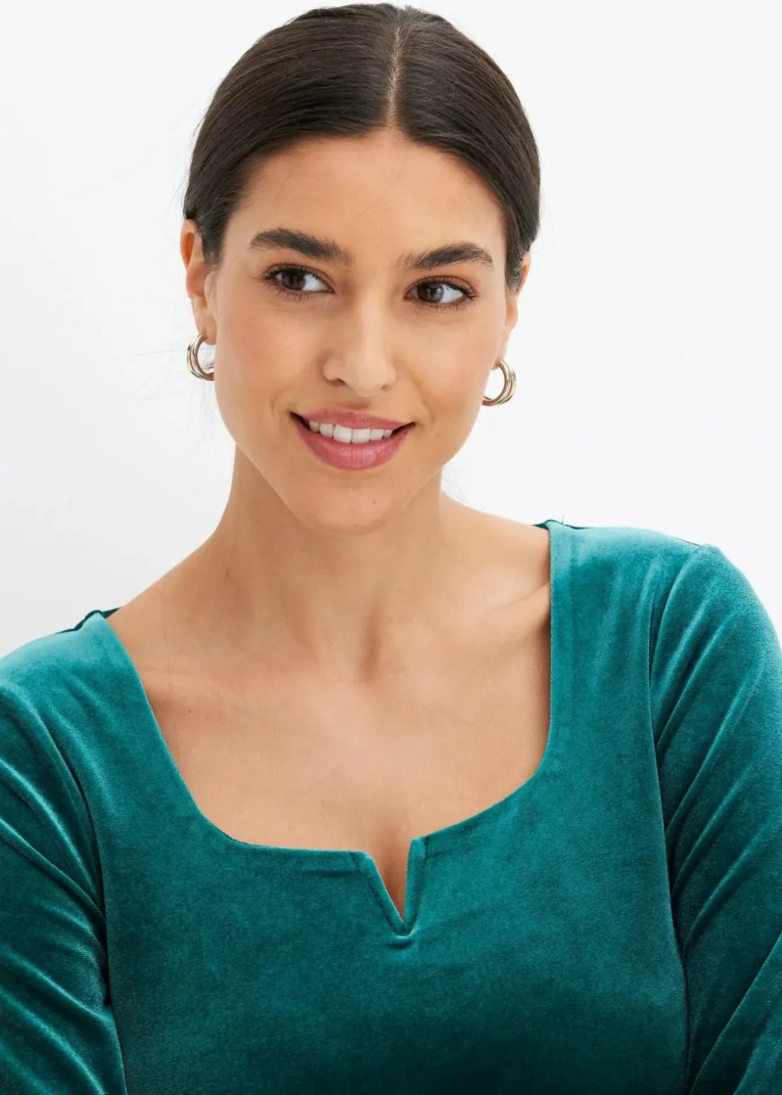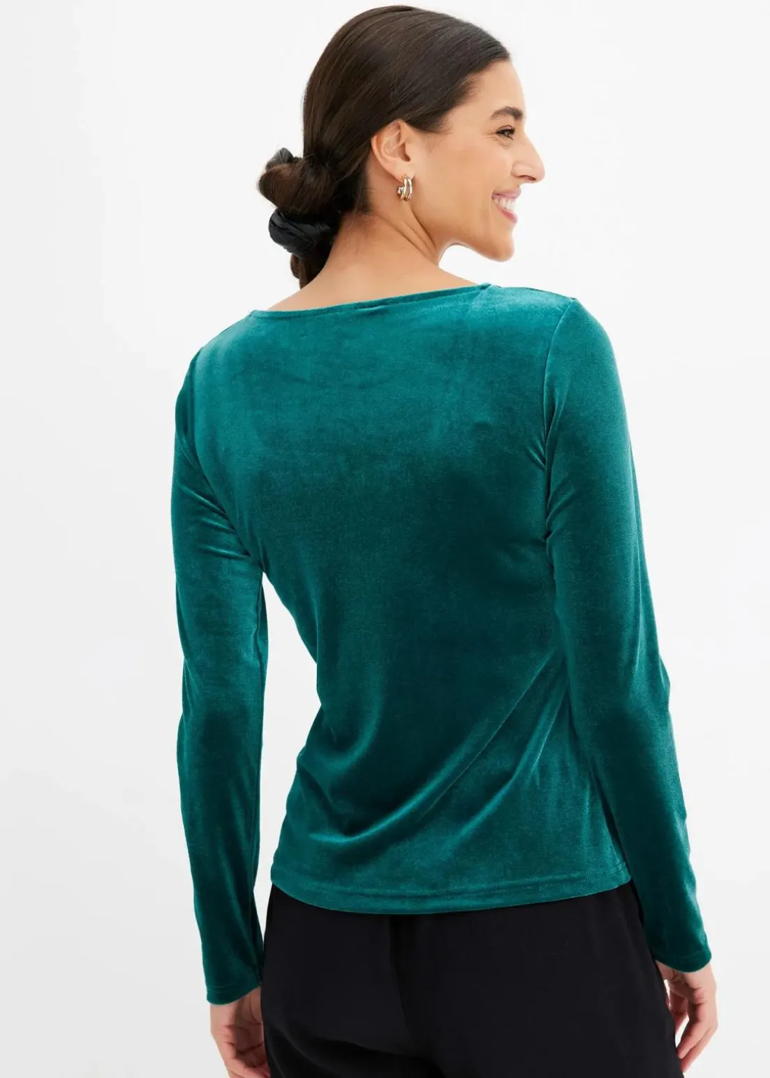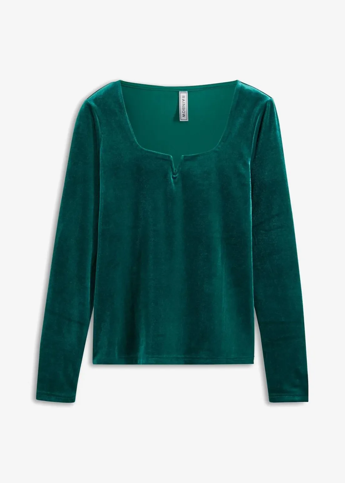 Feminines Shirt in Samtoptik mit tiefem Carré-Ausschnitt sowie Schlitz
