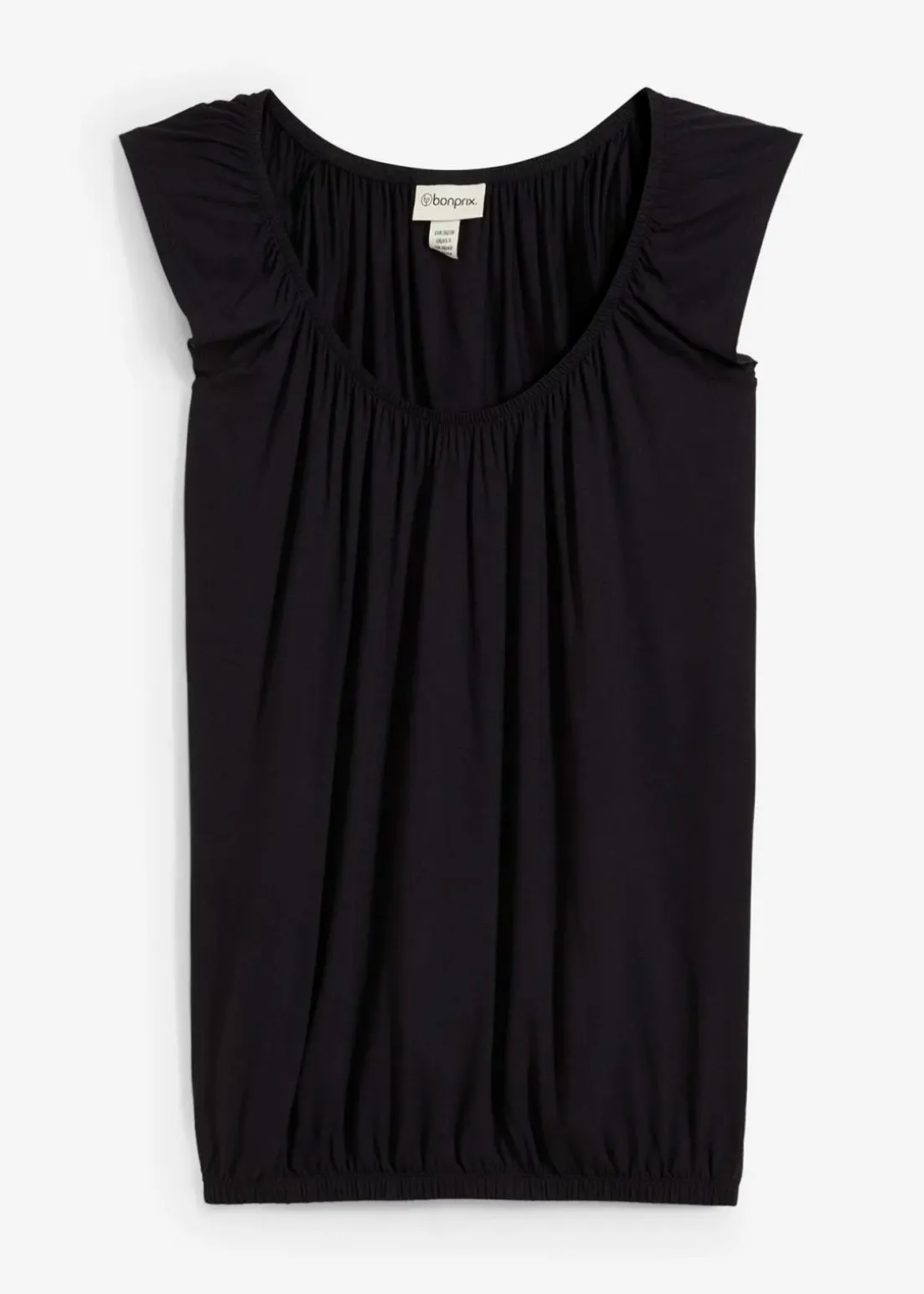 Shirttop mit Schmetterlings-Ärmeln und elastischem Saum