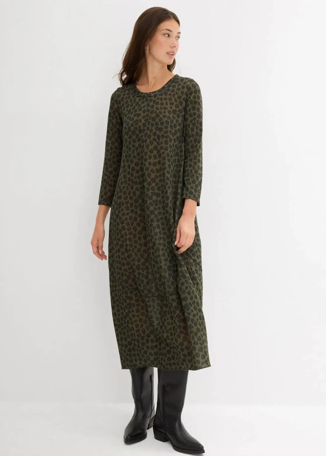 Stylishes Leo-Shirtkleid mit Egg-Shape in Midilänge
