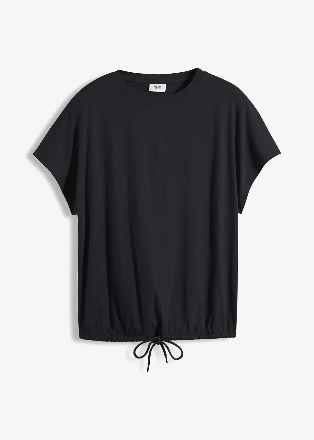 Weit geschnittenes Shirt lässt sich durch den Tunnelzug in der Hüfte individuell einstellen