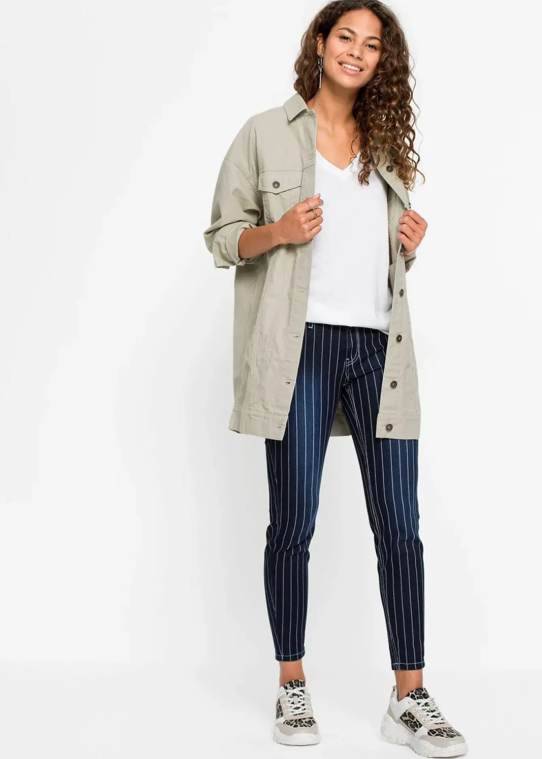 Ein angesagter Mix aus Basics und besonderen Lieblingsstücken kreiert einen coolen Style. Dieses trendy Shirt gehört zur ersten Kategorie. Das Kurzarm-Modell ist facettenreich einsetzbar und punktet mit seiner lässigen Passform. Ein legerer Look gelingt zu Jeansshorts und Sneakern. Zu wild gemusterten Hosen oder Röcken setzt das Shirt mit V-Ausschnitt einen beruhigenden Akzent.