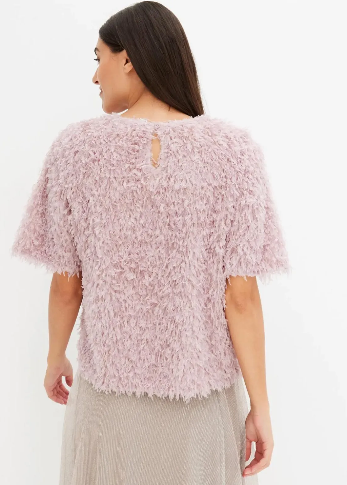modische Shirtbluse mit besonderem Material und Rundhals-Ausschnitt