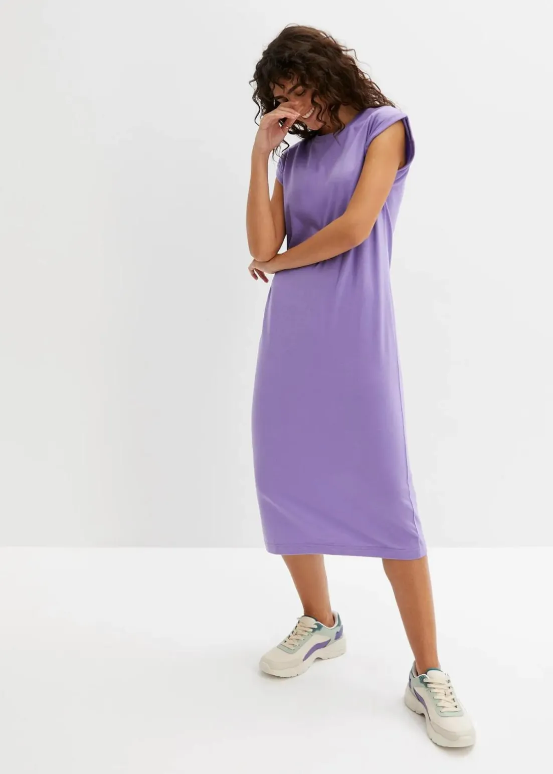 Lässiges Shirtkleid mit Rundhalsausschnitt und Schulterpolstern