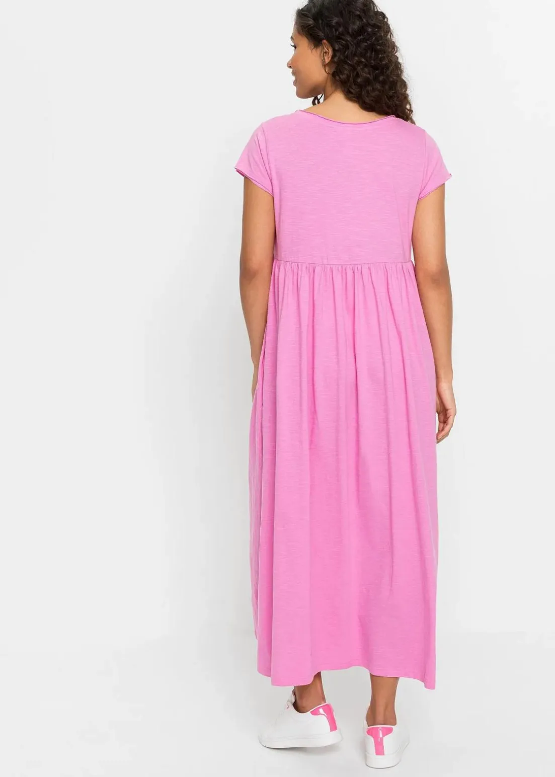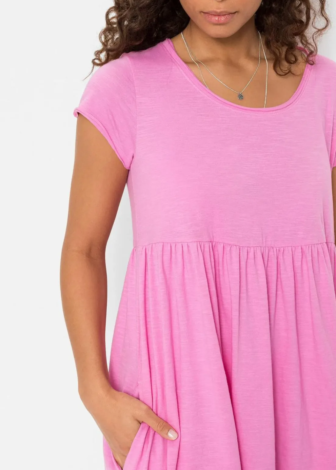 Jerseykleid mit Rundhalsausschnitt und seitlichen Eingriffstaschen.