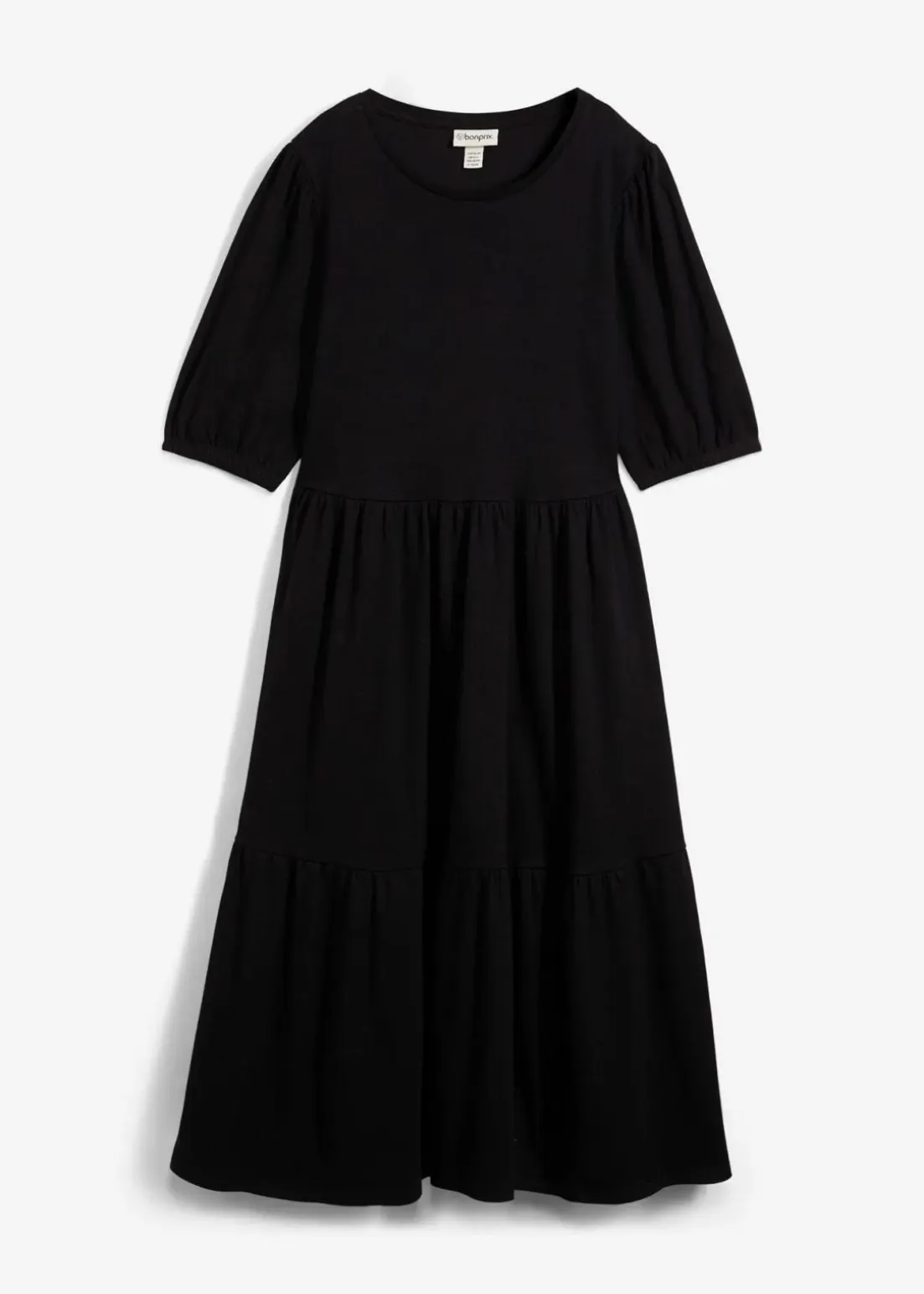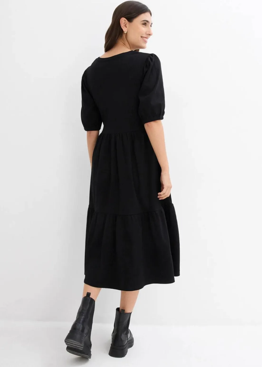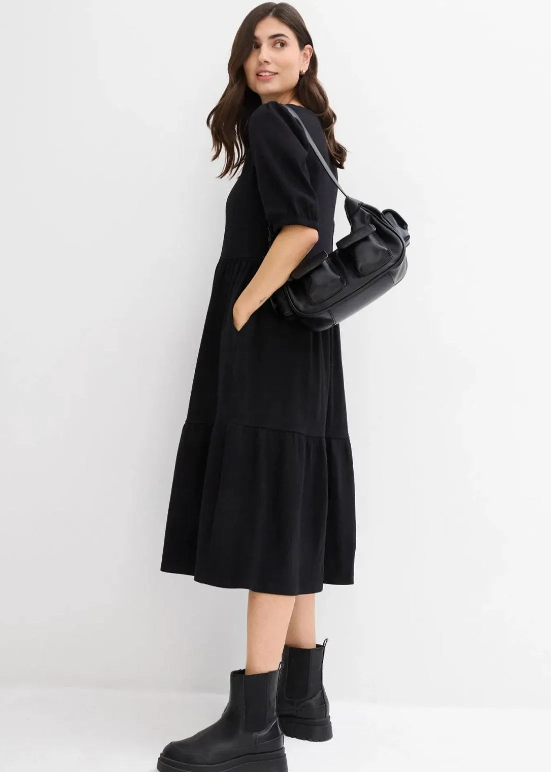 Midi-Kleid mit Elastik-Einsatz am Ärmel