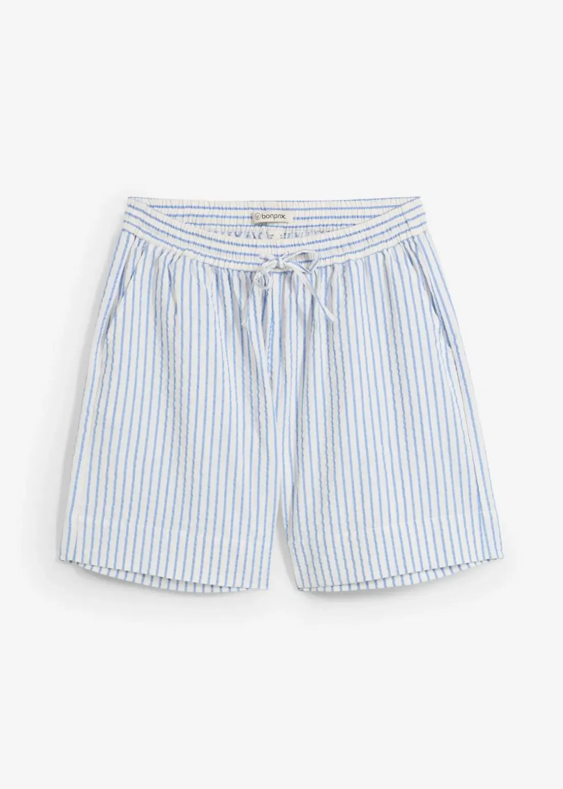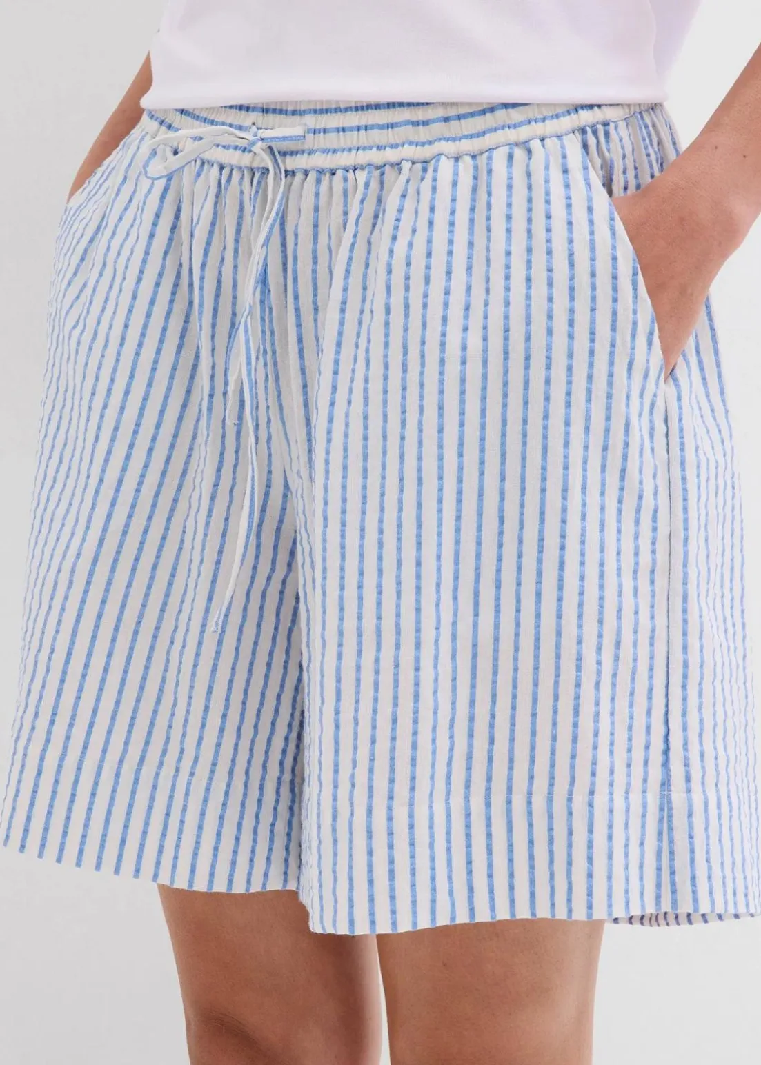Shorts mit luftiger Seersucker-Textur mit elastischem Bund und Kordelzug, der ein Verstellen der Passform ermöglicht