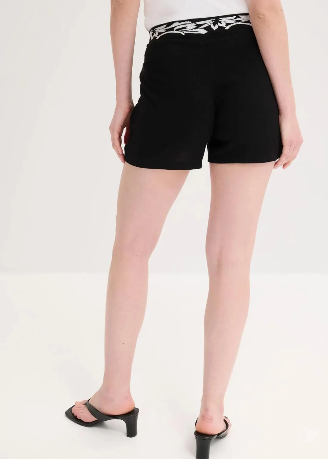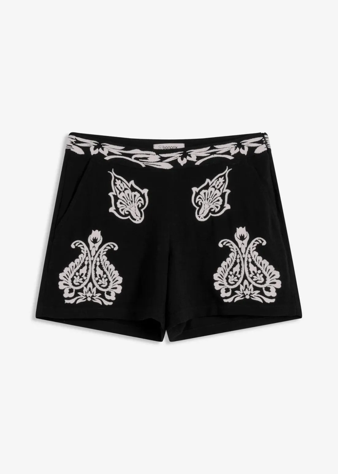 modische Shorts aus softem Viskose-Mix mit Stickerei in Kontrastfarbe und Zipper an der Seite