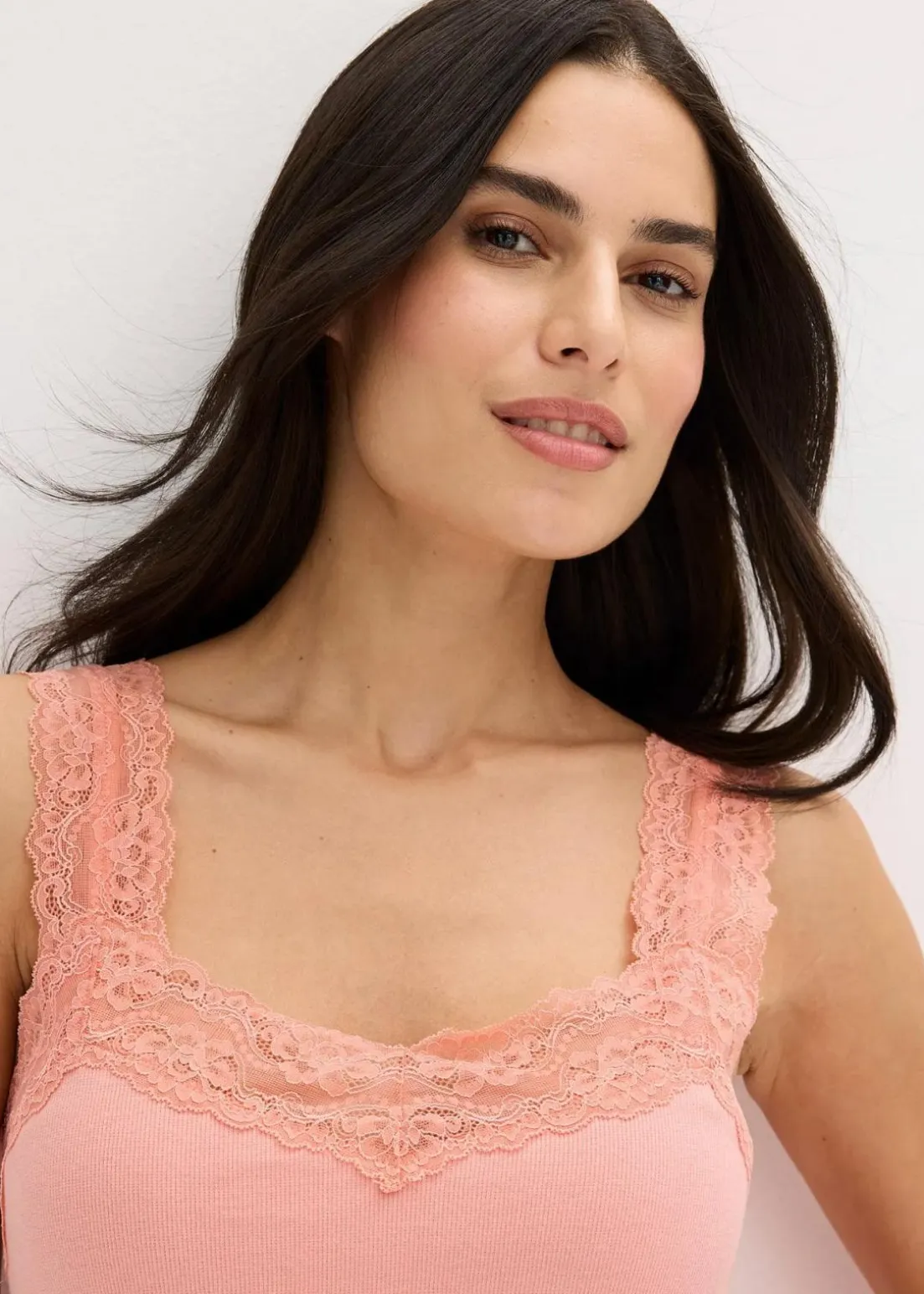 Gemütlicher Shorty aus Rippe mit schönem Spitzenbesatz