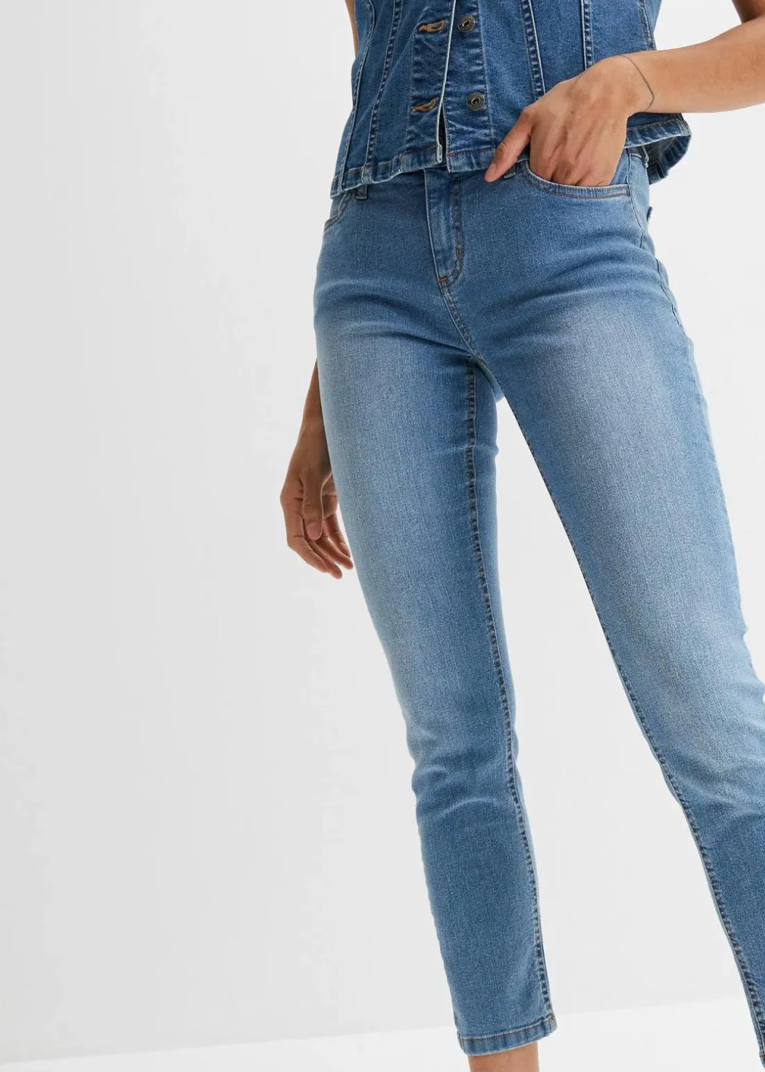 Schmal geschnittene 7/8-Basic-Stretch-Jeans mit vier Taschen