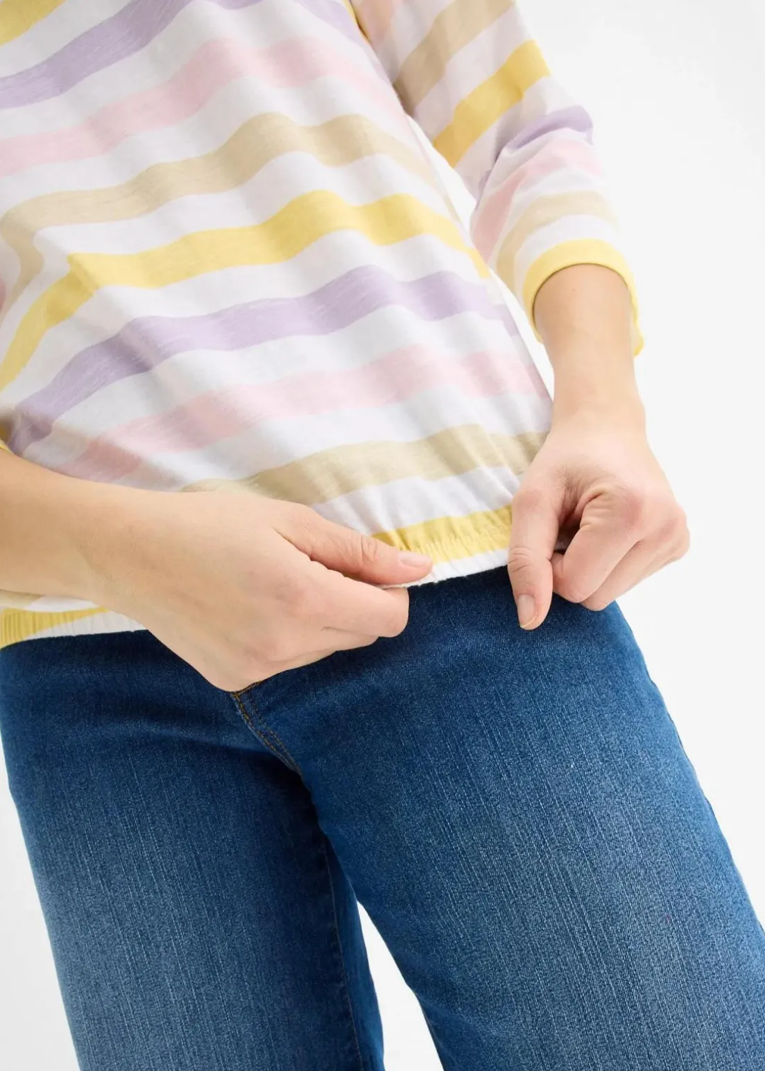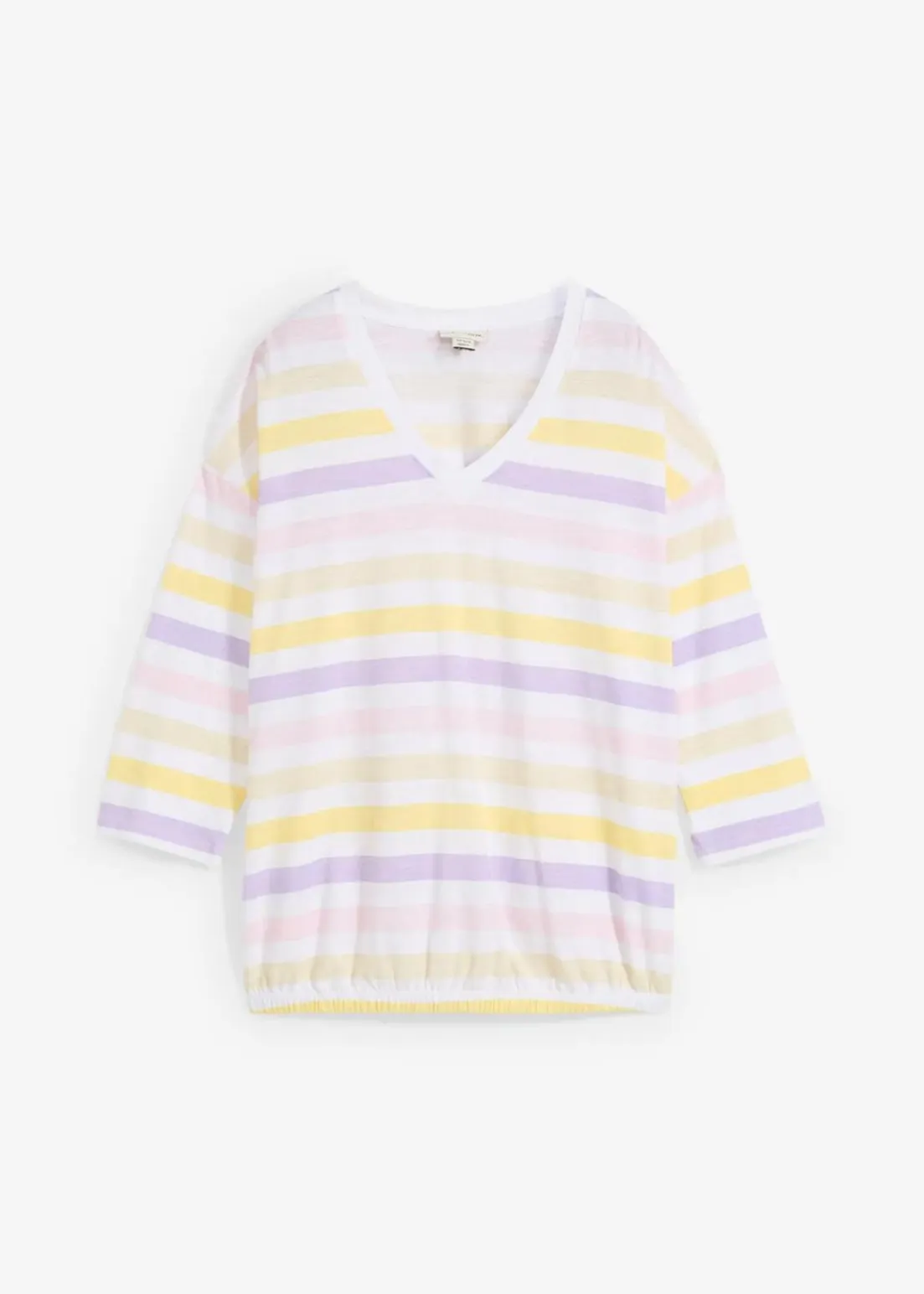 Baumwollslub-Shirt mit 3/4 Arm und V-Ausschnitt im streifen Look. Mit elastischem Einsatz an Bund für optimalen Komfort.