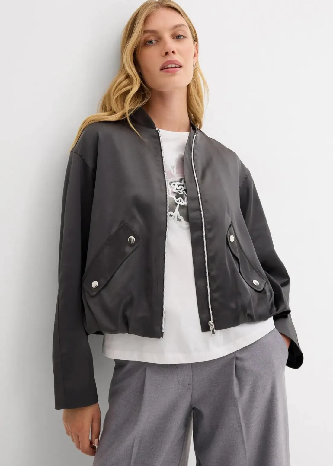 Blouson-Jacke mit schrägen Pattentaschen vorne und einem Ballonsaum