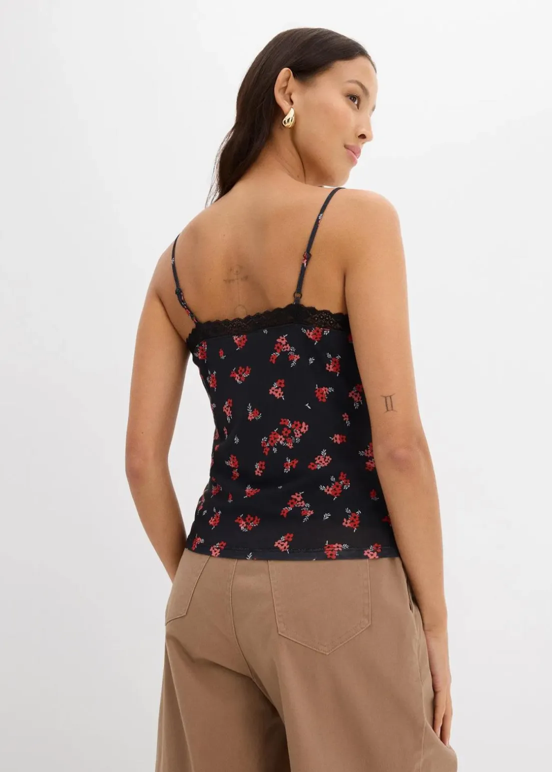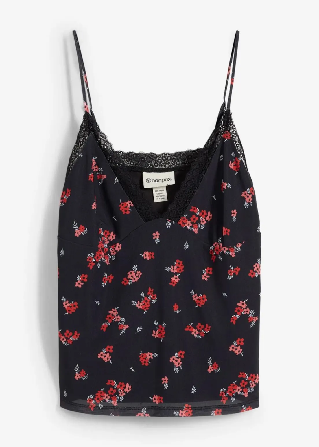 Verspieltes Top aus Mesh mit Spitze und Blumendruck