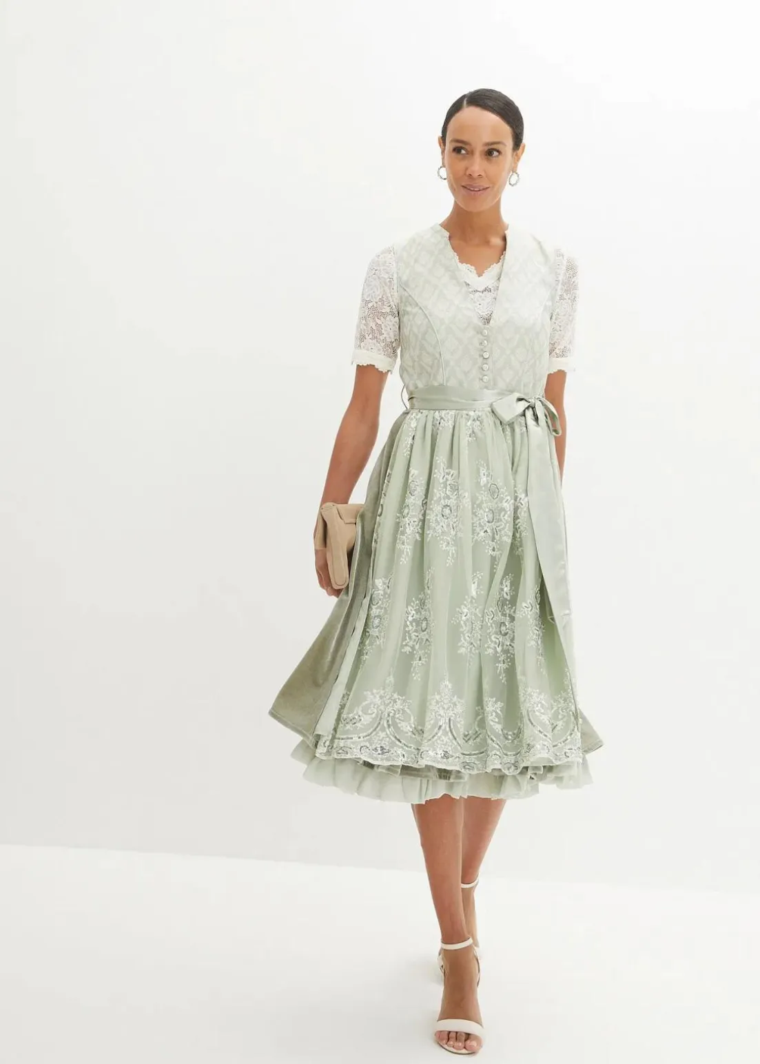 Hübsche Dirndlbluse mit Blumen-Spitze und halber Armlänge