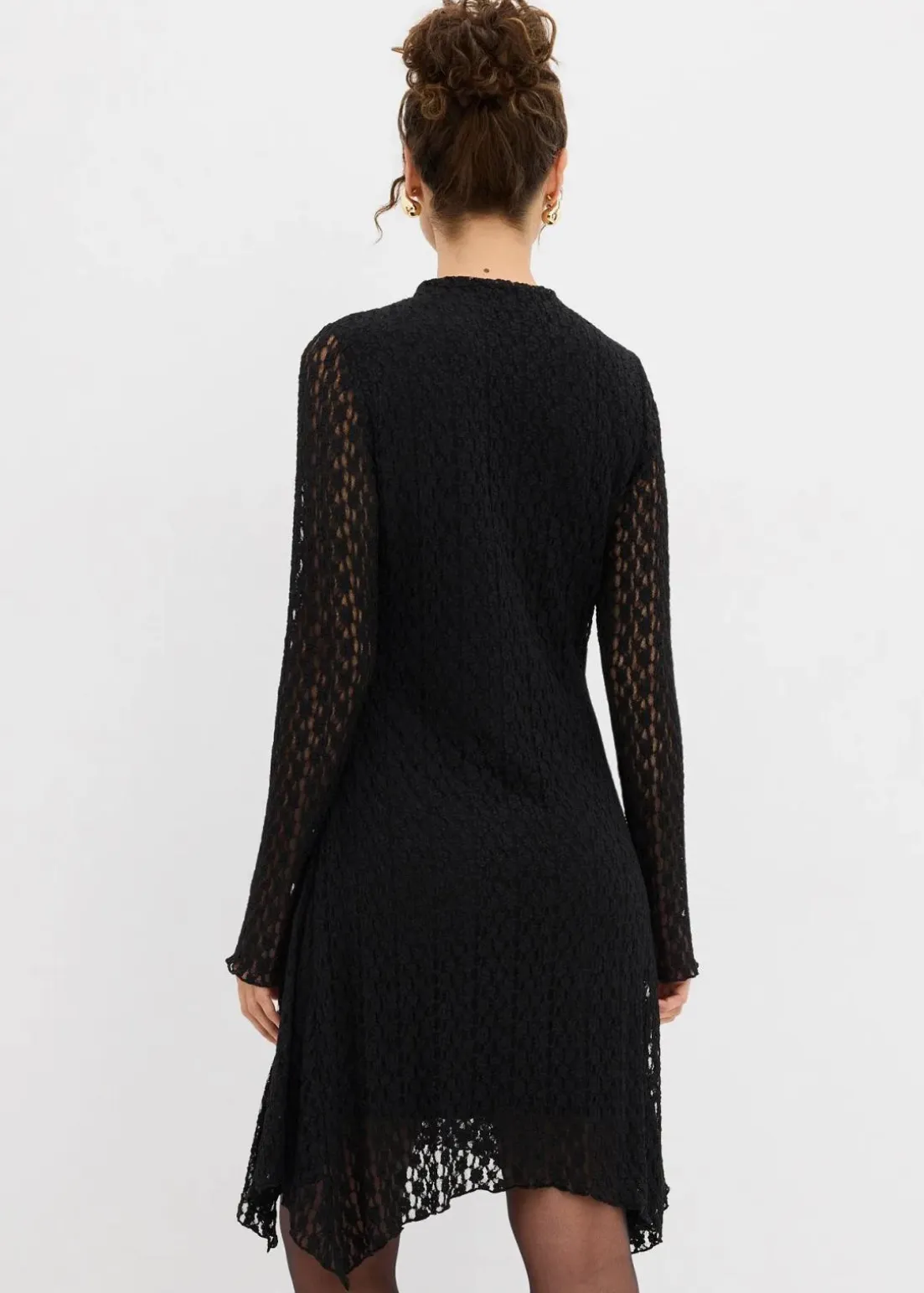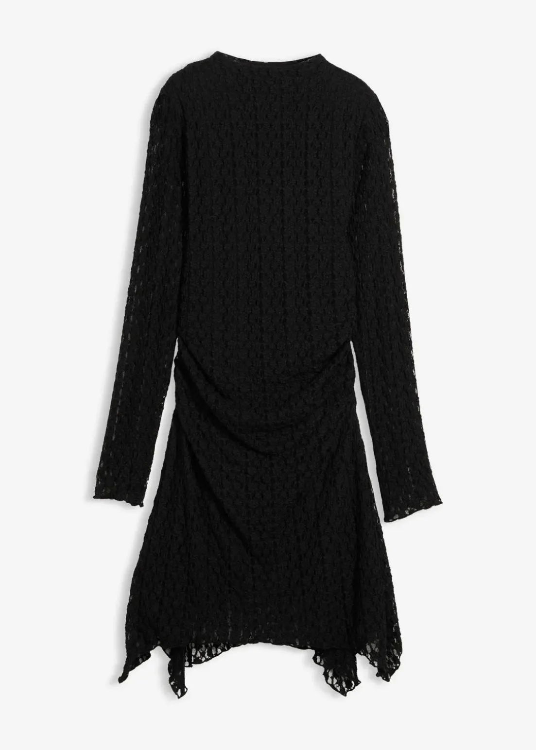 Figurbetontes Spitzenkleid mit Zipfelsaum und seitlicher Raffung