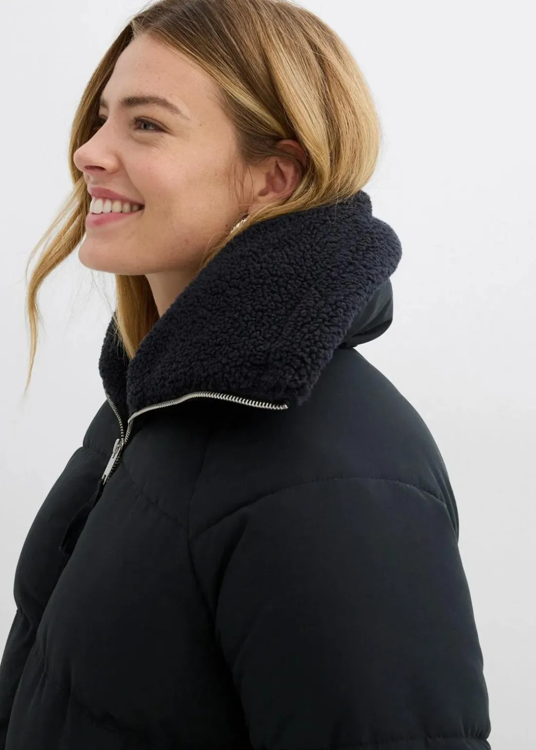Steppjacke mit hohem Kragen aus Teddy