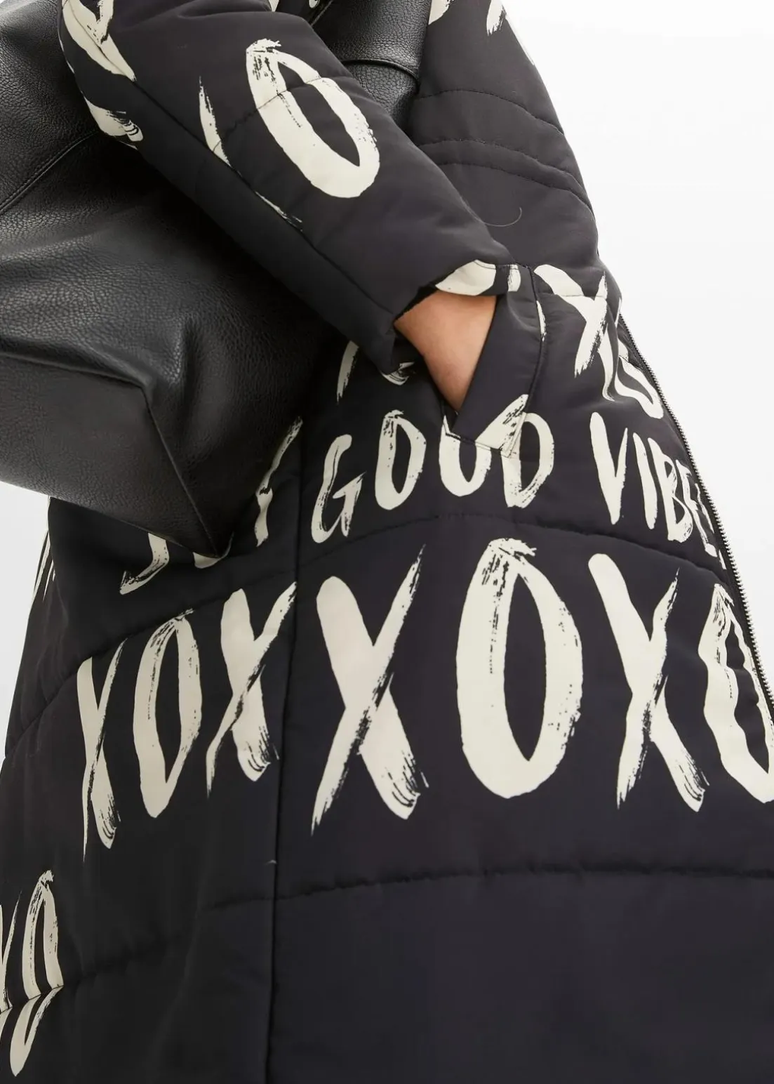 Trendiger, bedruckter Mantel mit Reißverschluss