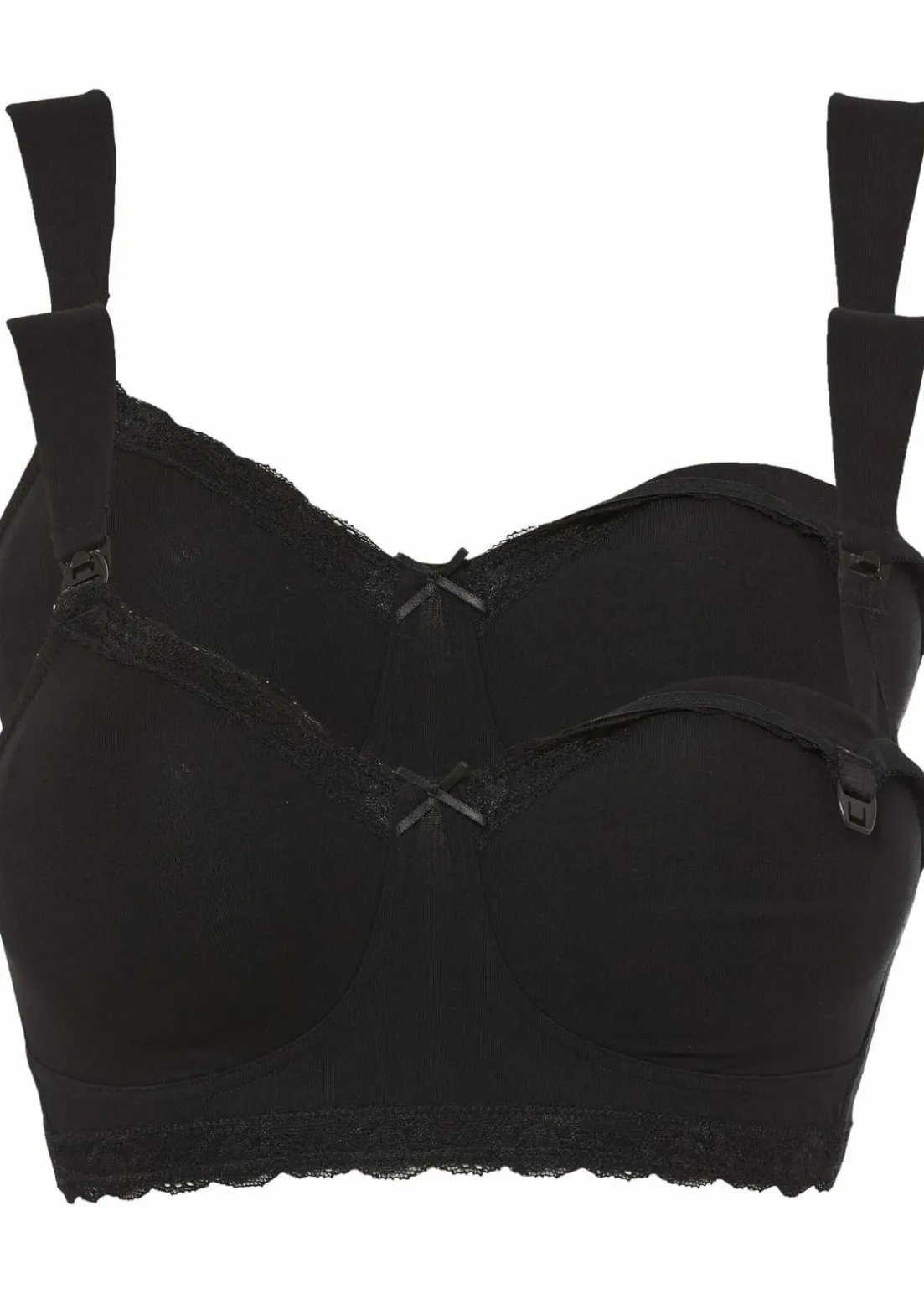 Weicher und bügellos verarbeiteter Still-BH mit breiten und gepolsterten Trägern. Eine schöne Spitze ziert Cup und Unterbrust. Dank einem Verschluss zwischen Träger und Cup lässt sich der BH leicht zum Stillen aufklappen.
