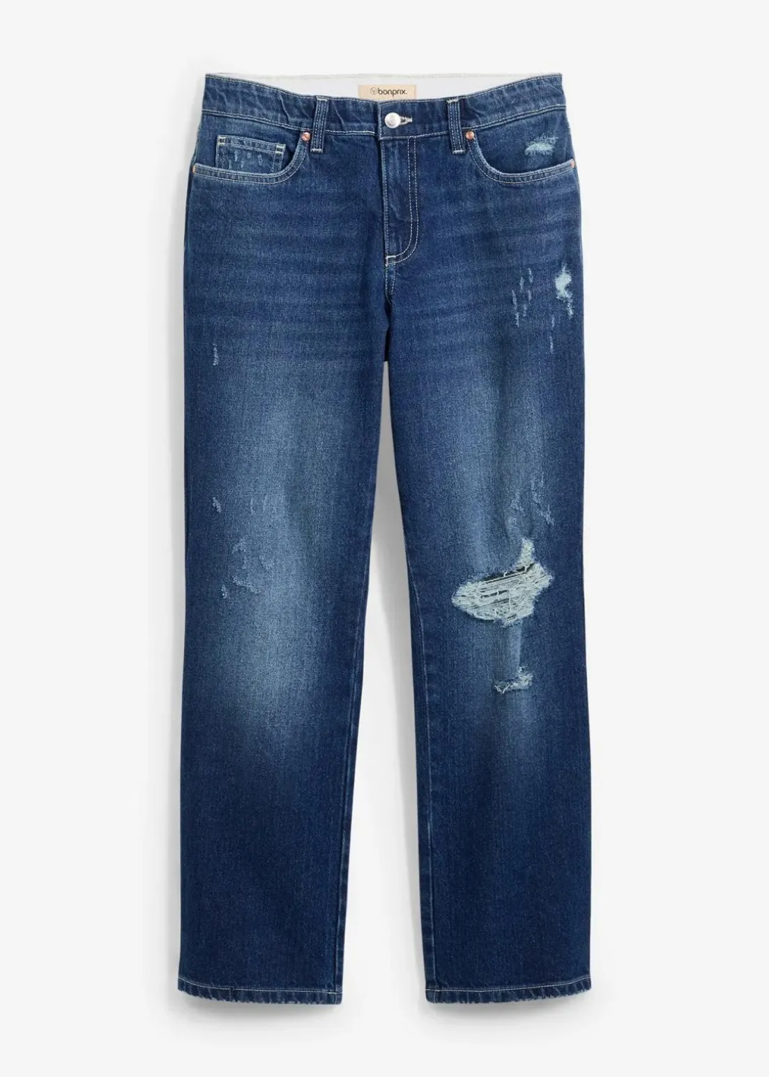 Verkürzte Straight Jeans mit Used Effekt