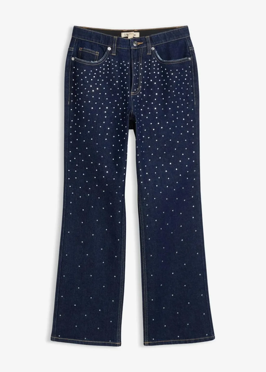 Gerade 5-Pocket-Jeans mit elastischem Bequembund aus Denim mit Strass.