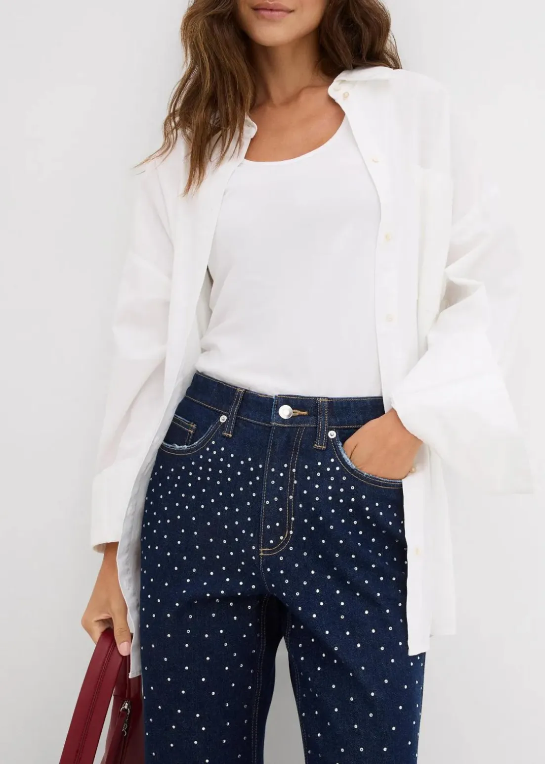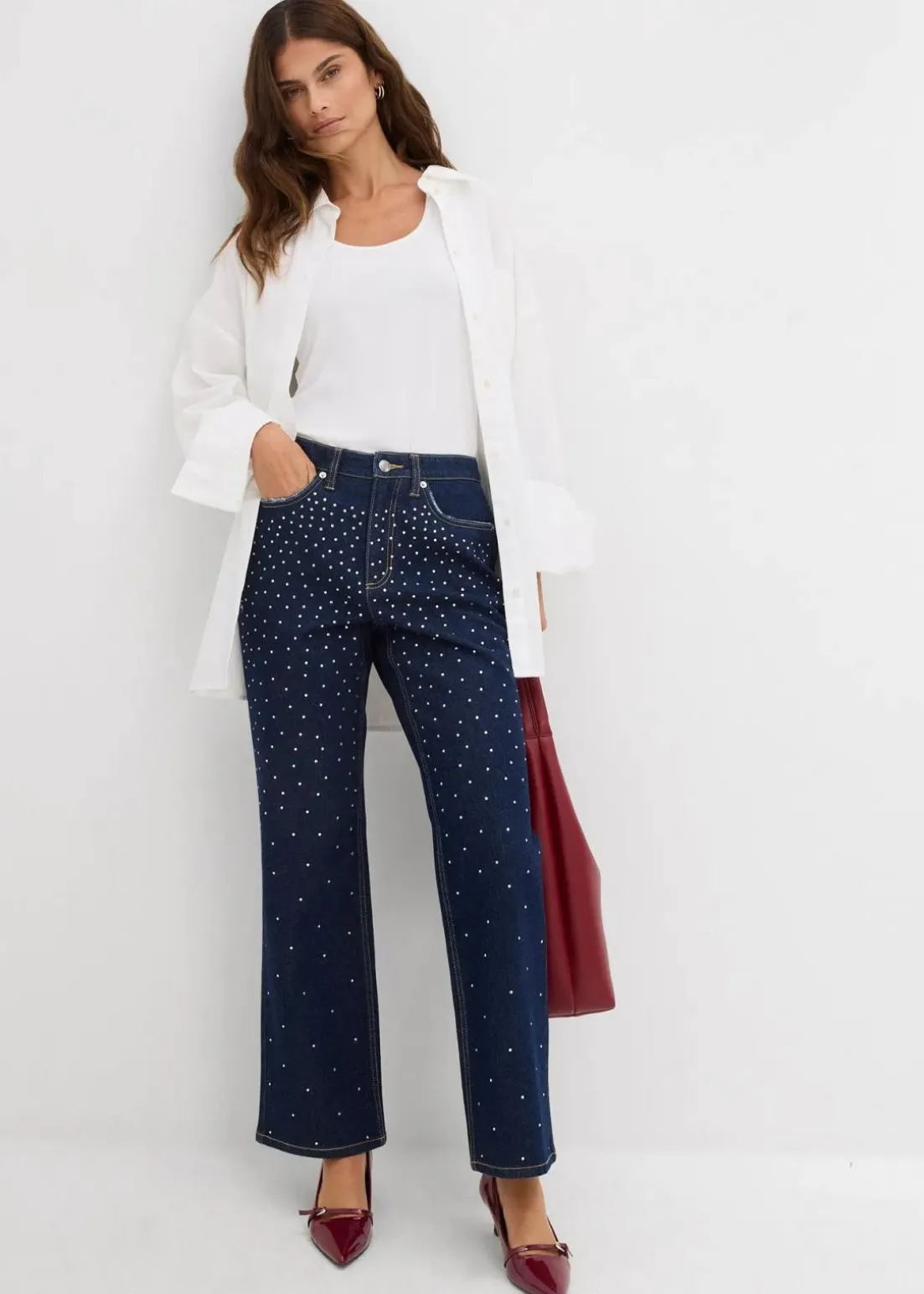 Straight-Jeans Mid Waist Bequembund mit Strass