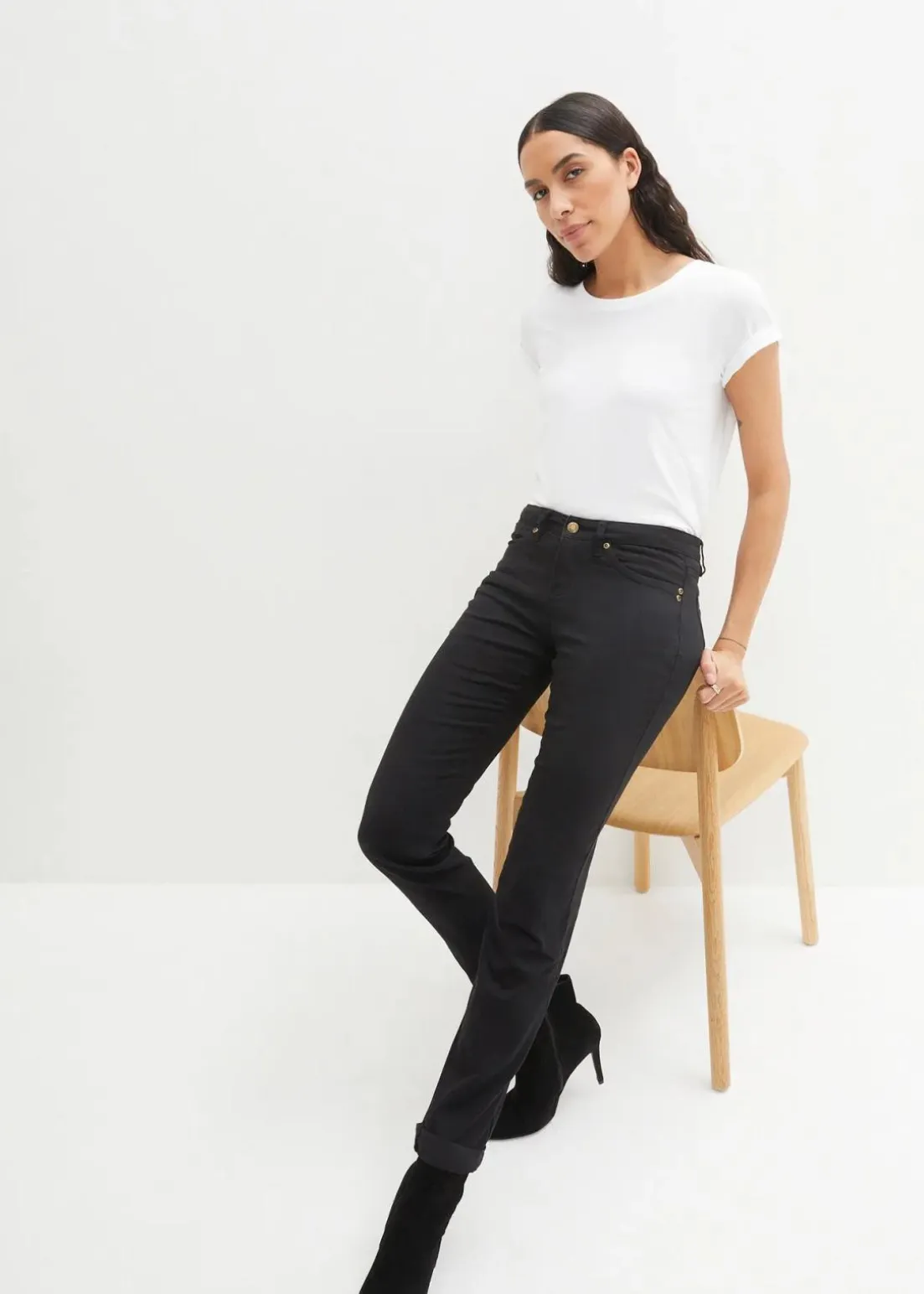 Diese Stretch Jeans Straight aus der Kollektion von John Baner hat das Potenzial zur absoluten Lieblingshose. Gerader Schnitt, lässige Used-Optik – so wird jeder Look zum Hingucker.Beim Kombinieren ist diese Hose vielseitig. Zu locker geschnittenen Blusen und Hemden, hübschen Tuniken und einfachen Basic-Shirts passt sie perfekt. Boots, Sneakers oder Ballerinas dazu – schon ist das Freizeitoutfit komplett.Referenzgröße für Längenangabe: Gr. 42