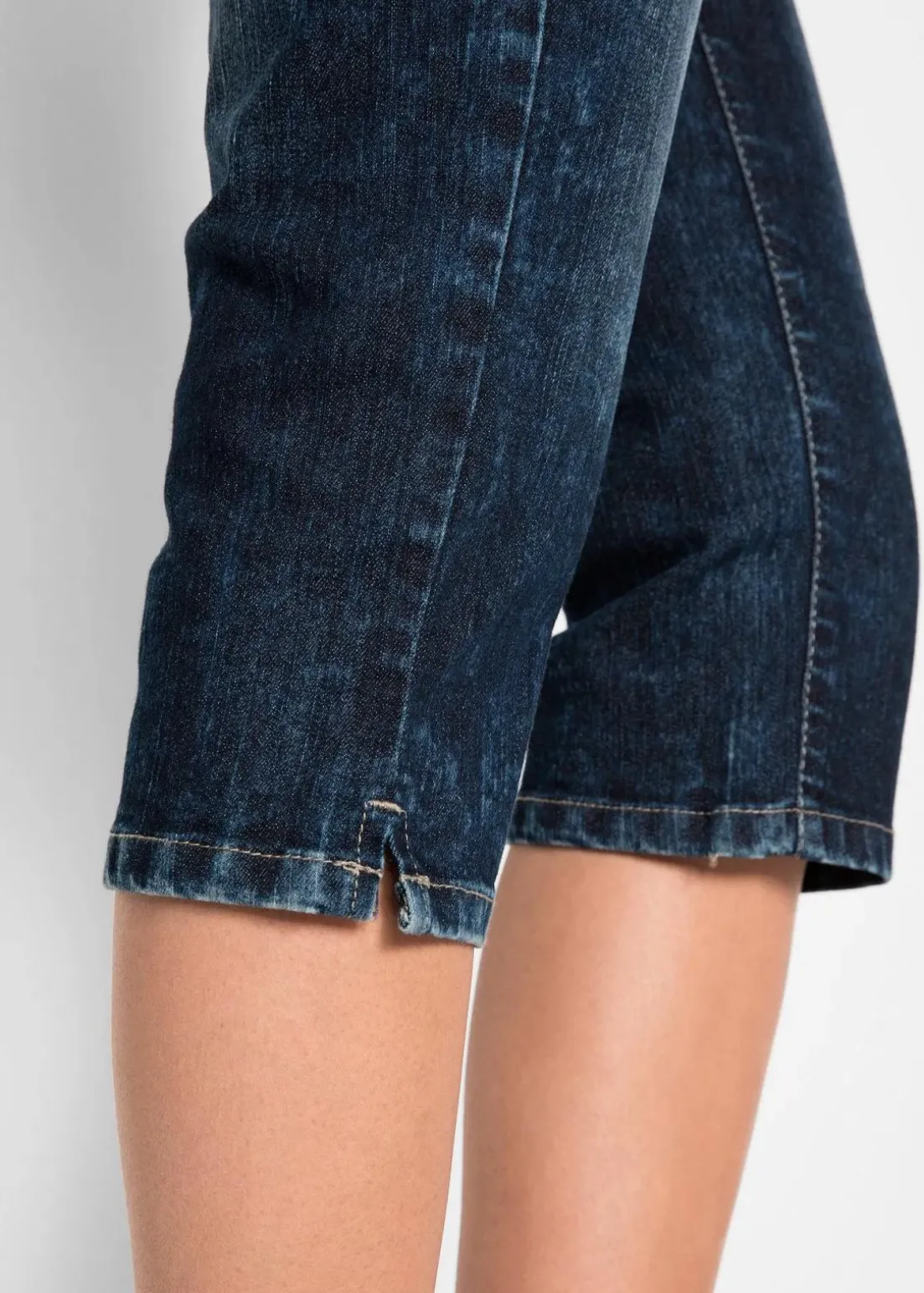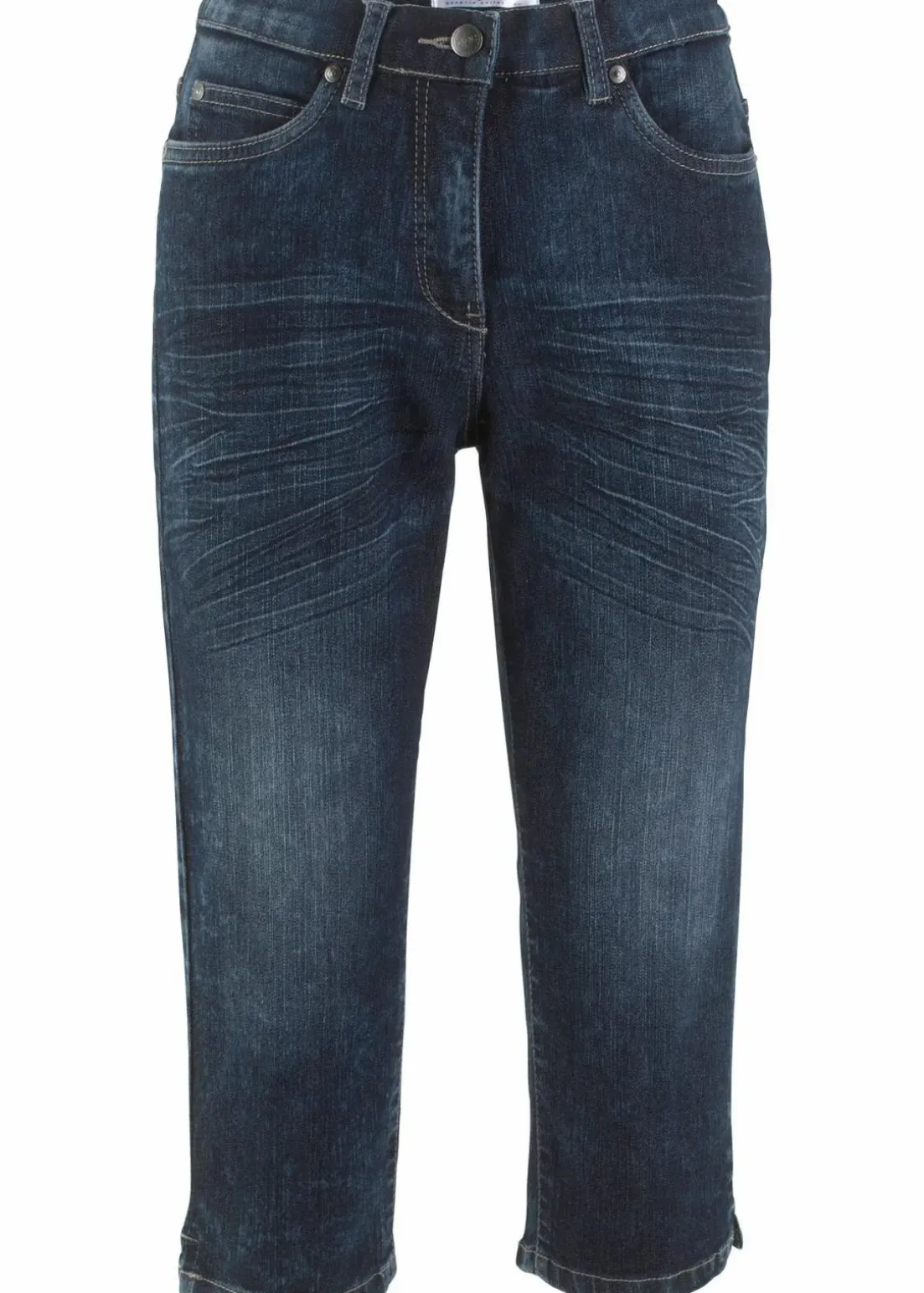 Ein Elasthan-Anteil verleiht dieser Komfort-Stretch-Jeans im Used-Look einen wunderbaren Sitz. Die auffällige Waschung und die Waschfalten an den Oberschenkeln sorgen bei diesem komfortablen Modell aus der bpc Kollektion für eine ansprechende Note. Die figurformende Stretch-Capri-Jeans präsentiert sich im klassischen 5-Pocket-Design.Kleine Schlitze am Beinende runden die attraktive 3/4-Hose ab. Sie ist mit Sneakern und Shirt auf lässige Weise sowie mit Sandalen und einer Blumen-Tunika auf verspielte Art kombinierbar.
