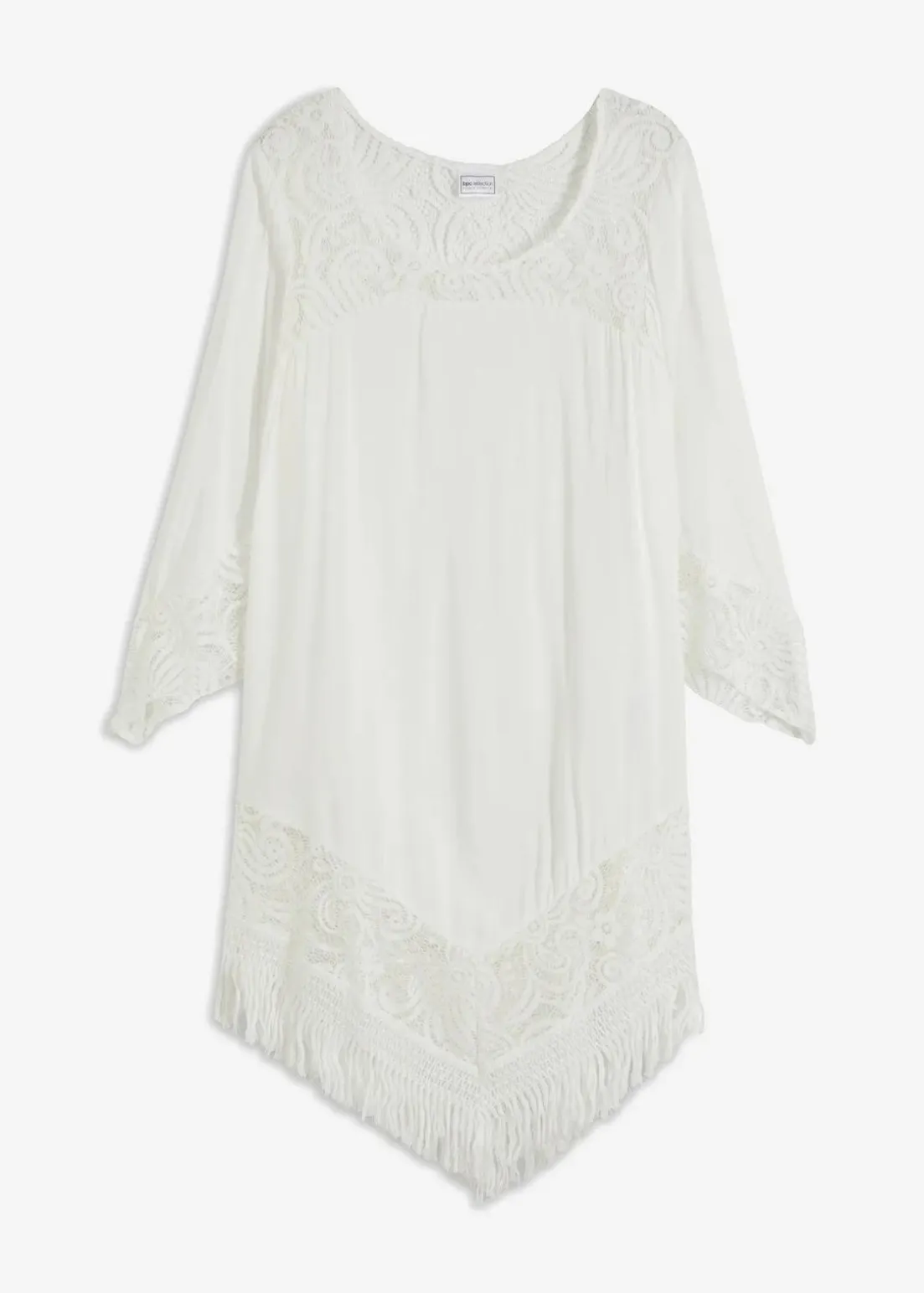 Die leicht transparente Strandtunika der Marke bpc selection bezaubert mit feiner Spitze und attraktivem Design. Die gehäkelten Spitzeneinsätze an Halsausschnitt, Saum und Ärmeln verleihen der Tunika einen eleganten Chic und lassen die sonnengebräunte Haut hindurchscheinen. Der schräg geschnittene Saum mit dekorativen Fransen unterstreicht den femininen Look. Für den Strand lässt sich die Tunika ideal mit eleganter Bademode kombinieren.